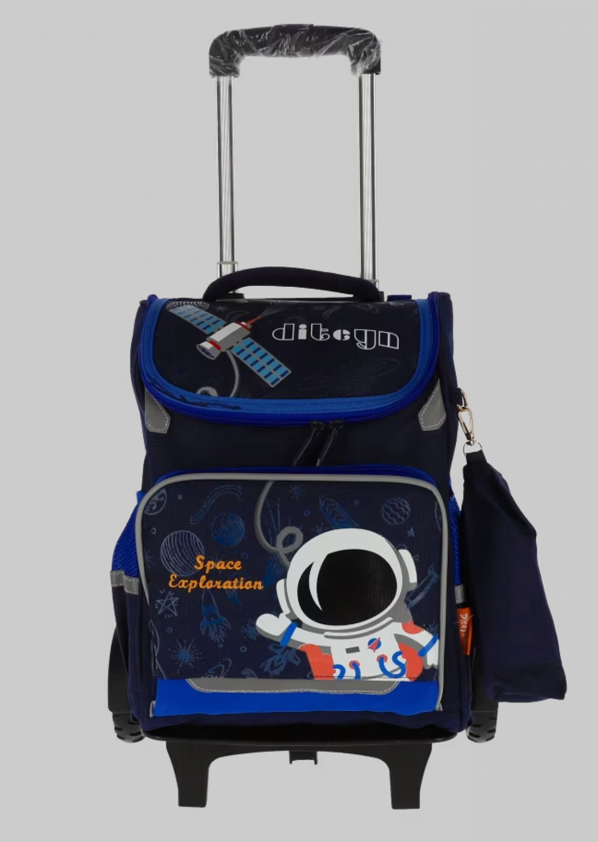 Ghiozdan scolar 40HX30X18cm pentru clasa pregatitoare cu 2 fermoare si troller detasabil cu 6 roti. Bretelele sunt buretate si ajustabile. Captusit la interior, spate buretat, buzunare laterale pentru sticla apa, agatatoare. Din material poliester.