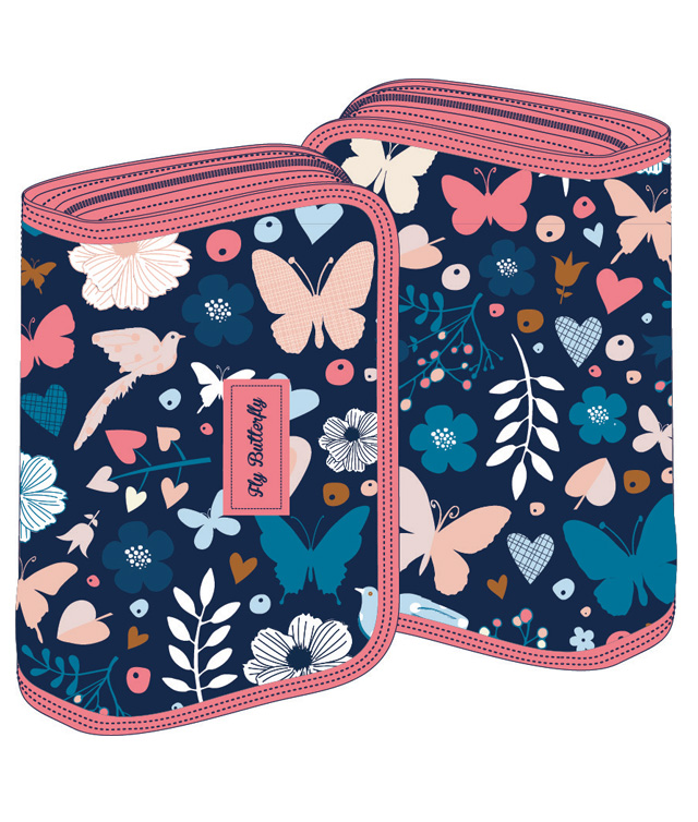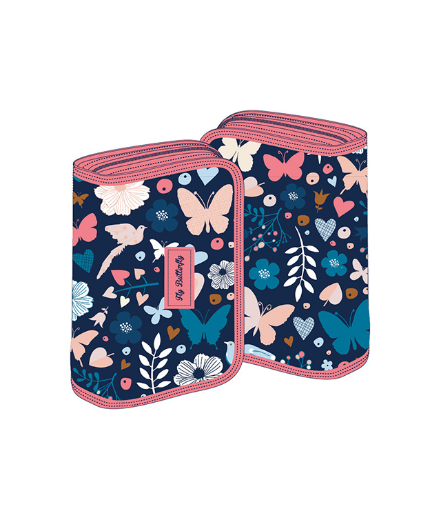 Penar școlar cu un compartiment și fermoar, disponibil în design-uri mixte colorate: model cu biciclist, pasăre sau fluturi. Ideal pentru organizarea rechizitelor, penarul Schoolfriendly combină funcționalitatea cu stilul vibrant, perfect pentru elevi de toate vârstele.