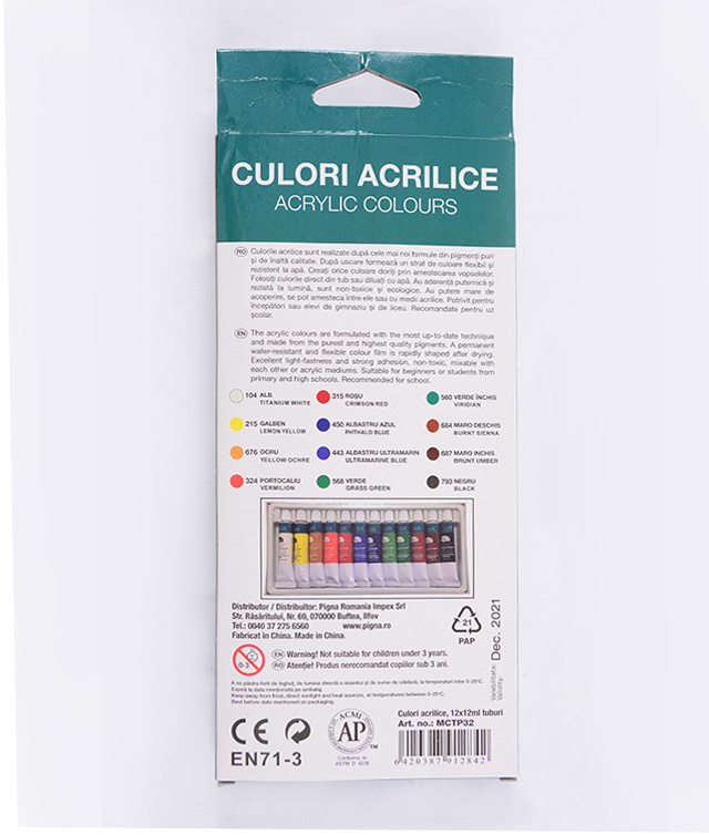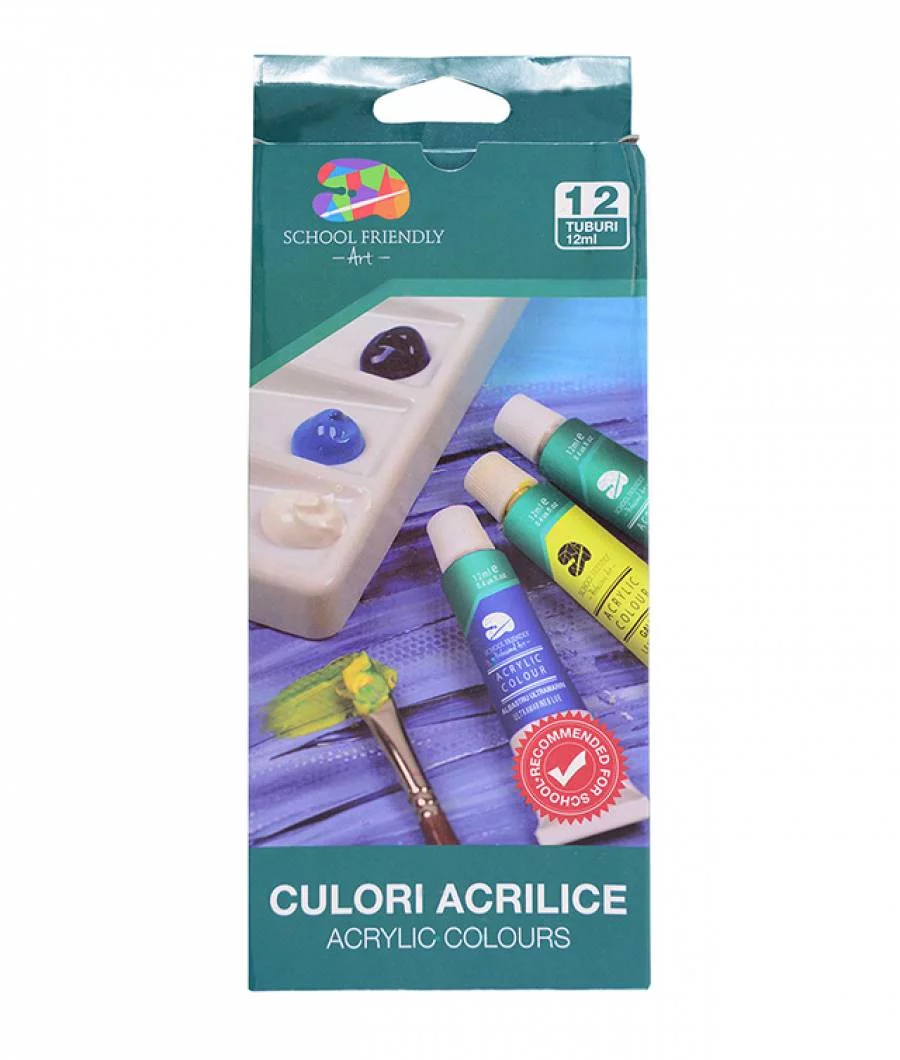 Acrilic Vopsea CK, 12 Culori, Tuburi 12 ml, Culori Acrilice pentru Pictura pe Panza, Lemn, Hartie și Hobby Creativ