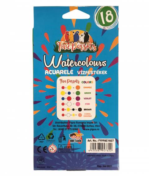 Acuarele 18 culori 28mm cu pensula Five Parrots