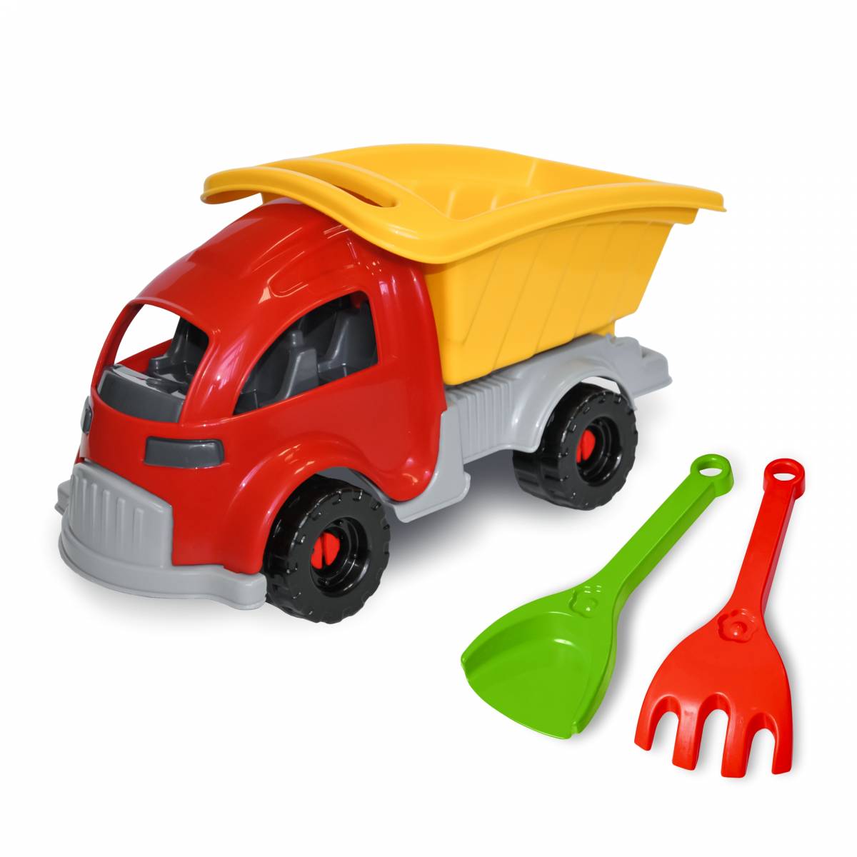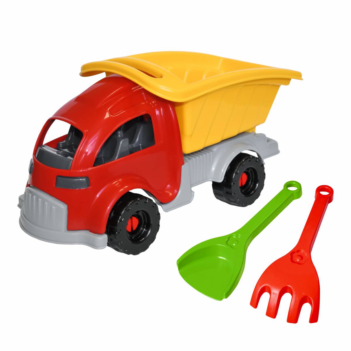 Descriere Basculantă colorată cu lopată și greblă incluse, marca Tigres. Material durabil, culori vii. Ideală pentru nisip, grădiniță sau plajă, copii 2-6 ani.
