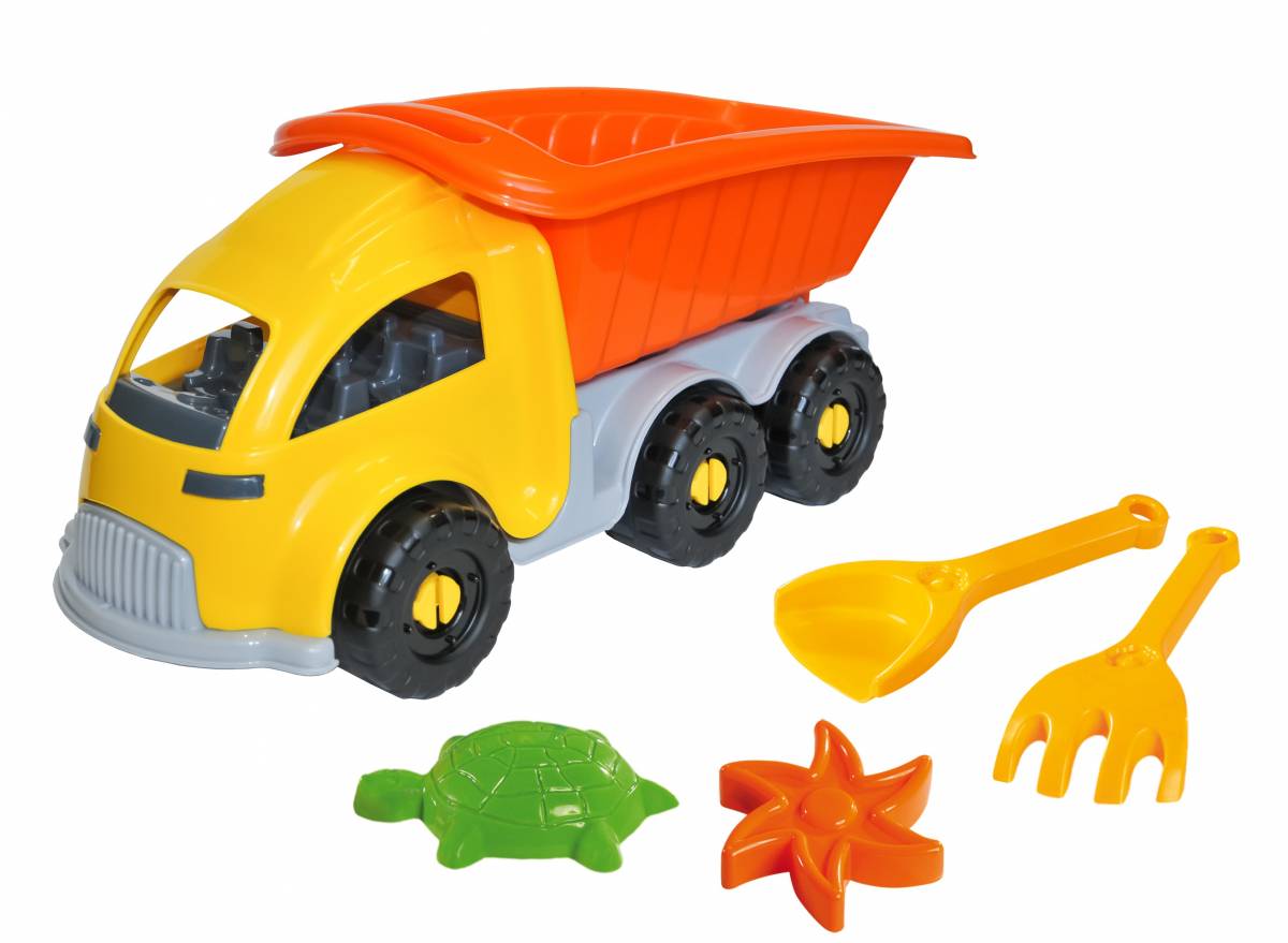 Descriere Basculantă cu benă funcțională și set de nisip cu 4 accesorii Tigres. Jucărie robustă din plastic ABS. Perfectă pentru plajă și joacă în aer liber.