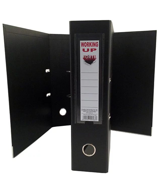 Biblioraft WorkingUp PP FORTE negru cu șină de 8 cm, ideal pentru organizarea eficientă a documentelor de birou. Fabricat din polipropilenă rezistentă, oferă durabilitate superioară și protecție optimă pentru documente. Mecanism metalic robust cu două inele, finisaj negru elegant și inel de prindere cromat pentru arhivare profesională.