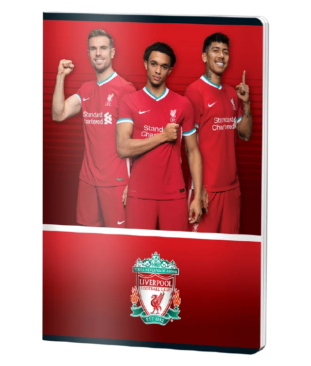 Caiet A4 Liverpool cu 60 de file dictando, perfect pentru fanii echipei și elevii pasionați de fotbal. Coperta rezistentă prezintă emblema oficială și jucătorii preferați, oferind un design vibrant în roșu și alb. Ideal pentru școală sau birou, combină funcționalitatea cu stilul sportiv autentic.