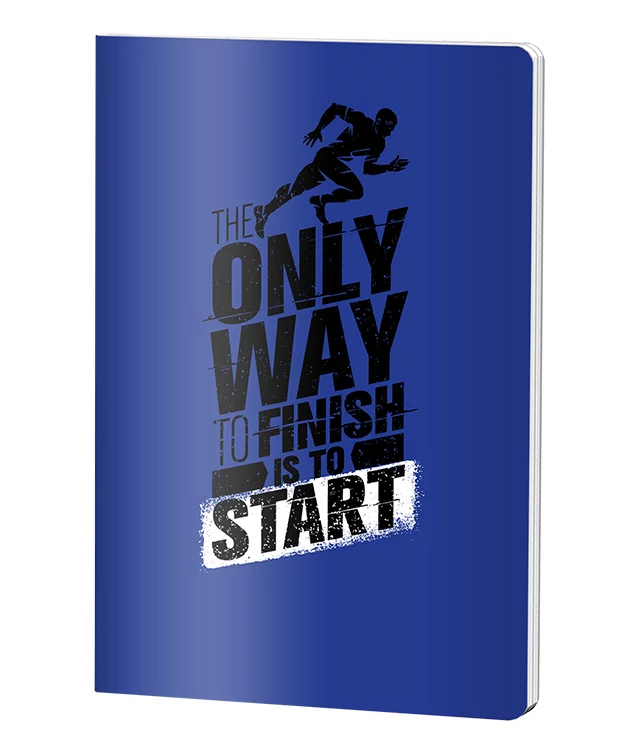 Caiet dictando Pigna A4 cu copertă din plastic albastru, 60 file 70 gr, capsare laterală. Design motivațional START BLU cu grafică sportivă, ideal pentru notițe și sarcini școlare. Calitate superioară pentru utilizare zilnică la școală sau birou.