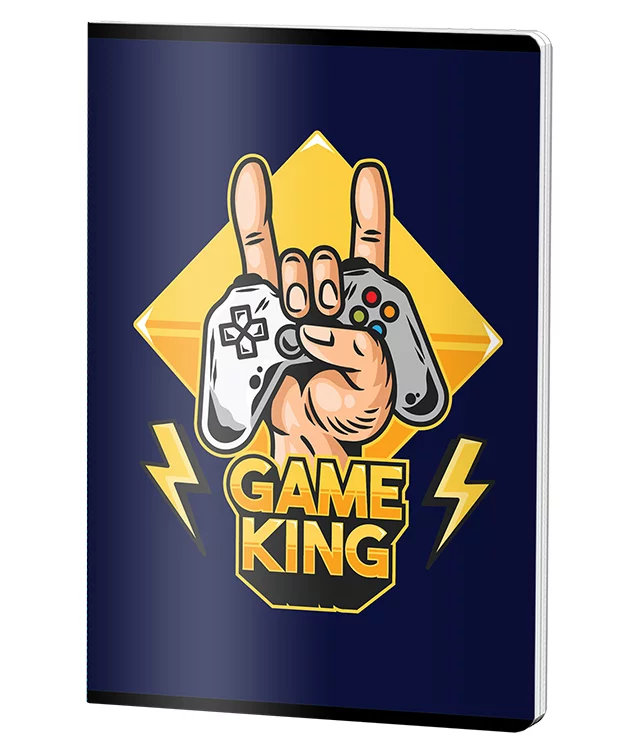 Caietul capsat Pigna Gaming, format A4, oferă 60 de file dictando cu copertă din plastic rezistent, ideal pentru elevi și gameri. Design modern cu ilustrație gaming pe fond albastru închis, hârtie de 70 grame, perfect pentru notițe și teme școlare.