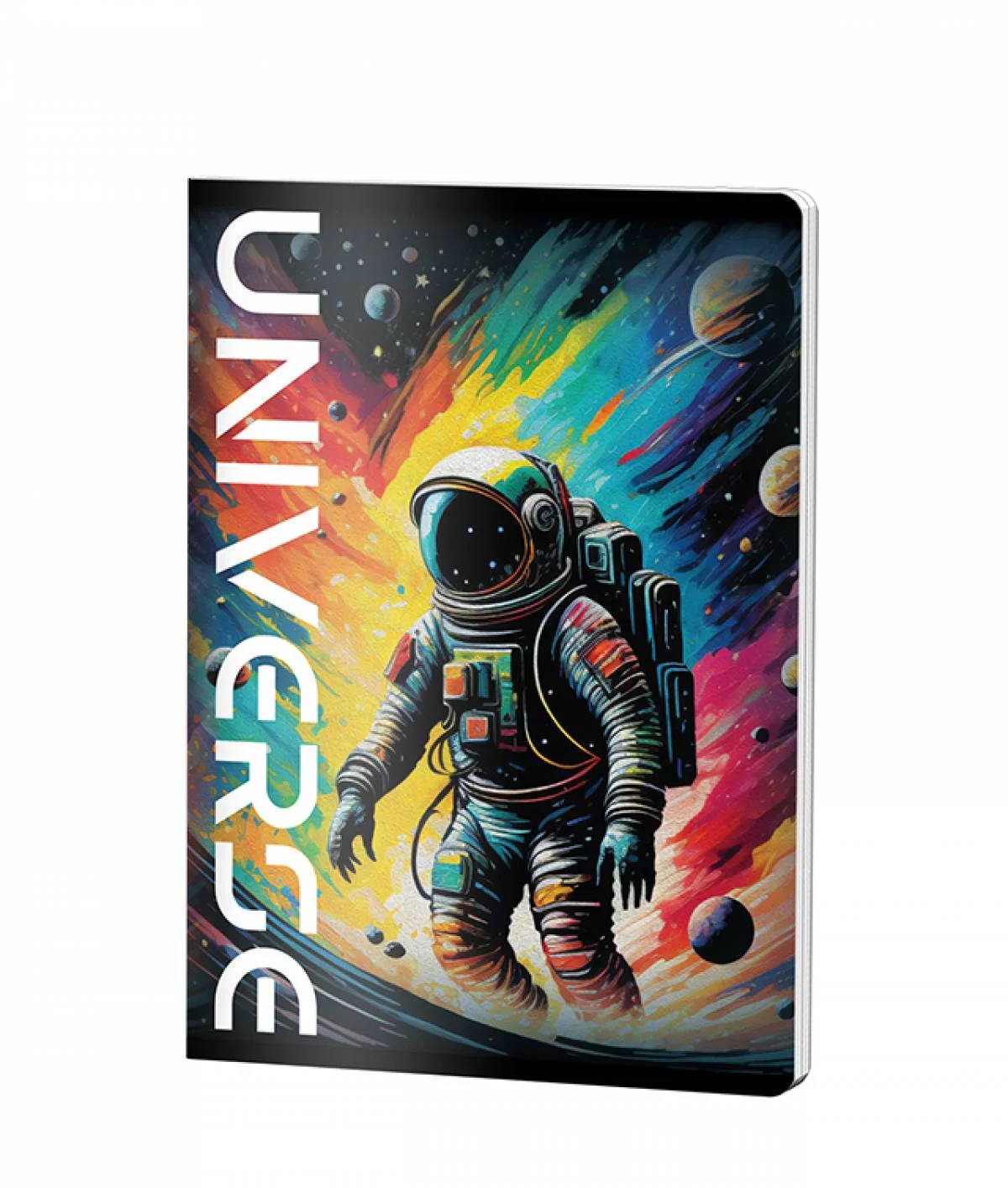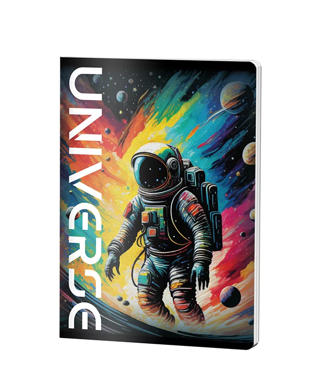 Caietul Pigna dictando A5 cu copertă din plastic rezistent prezintă un design cosmic spectaculos cu astronaut și planete colorate, perfect pentru băieți. Cu 48 de file de 70 grame și legare prin capsare, acest caiet școlar combină calitatea mărcii Pigna cu un grafic modern Universe, ideal pentru notițe și teme.
