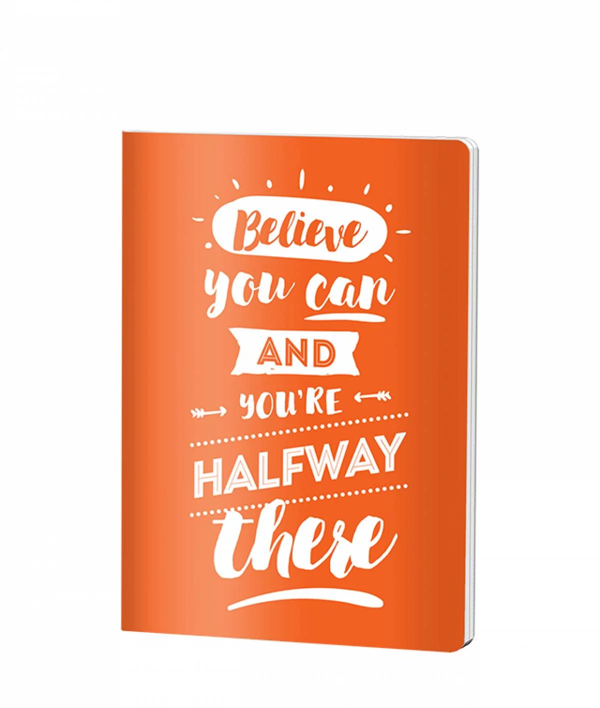 Caietul Pigna Believe Orange format A5 cu copertă din plastic rezistent și 48 de file dictando de 70 grame oferă calitate superioară pentru notițe și teme școlare. Design motivațional vibrant cu mesaj inspirațional, ideal pentru elevi și studenți, cu capsare durabilă și hârtie de calitate premium.