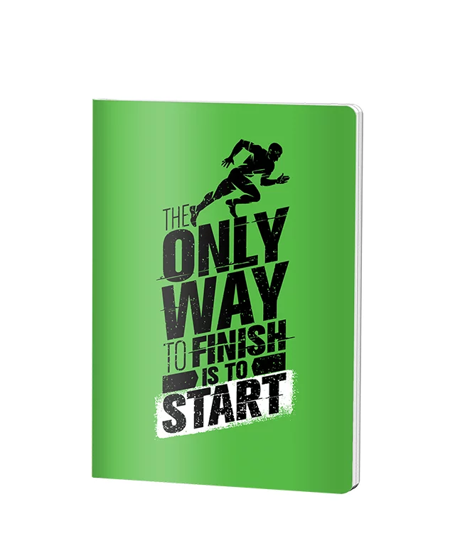 Caietul capsat Pigna format A5 cu copertă din plastic verde vibrante oferă 48 de file dictando de 70 grame, ideale pentru notițe școlare și birou. Design motivațional cu grafică sportivă, rezistent și practic pentru uz zilnic.