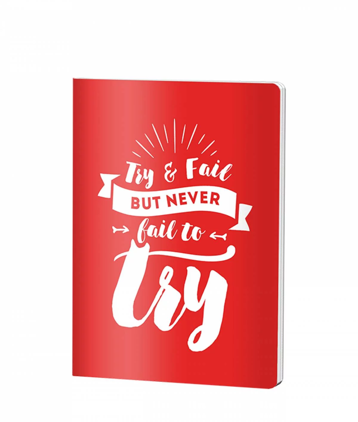 Caiet dictando Pigna format A5 cu copertă din plastic roșu și mesaj motivațional, 48 de file de 70 grame, ideal pentru notiță și organizare. Design modern din colecția TRY, cu legare capsată rezistentă, perfect pentru școală sau birou.