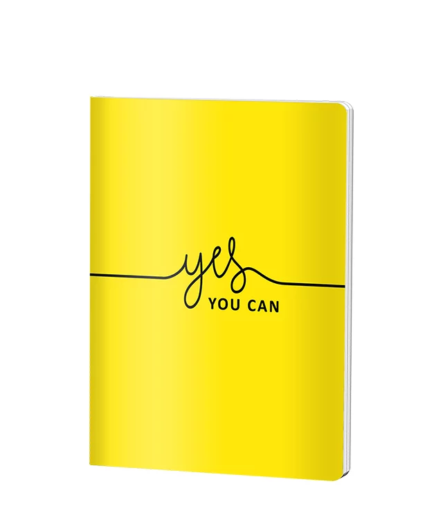 Caietul Pigna format A5 cu dictando și copertă din plastic galben vibrant oferă 48 de file de 70 grame, ideal pentru notițe și studiu. Design motivațional cu mesajul "yes YOU CAN", finisaj durabil și sistem de capsare rezistent, perfect pentru școală sau birou.