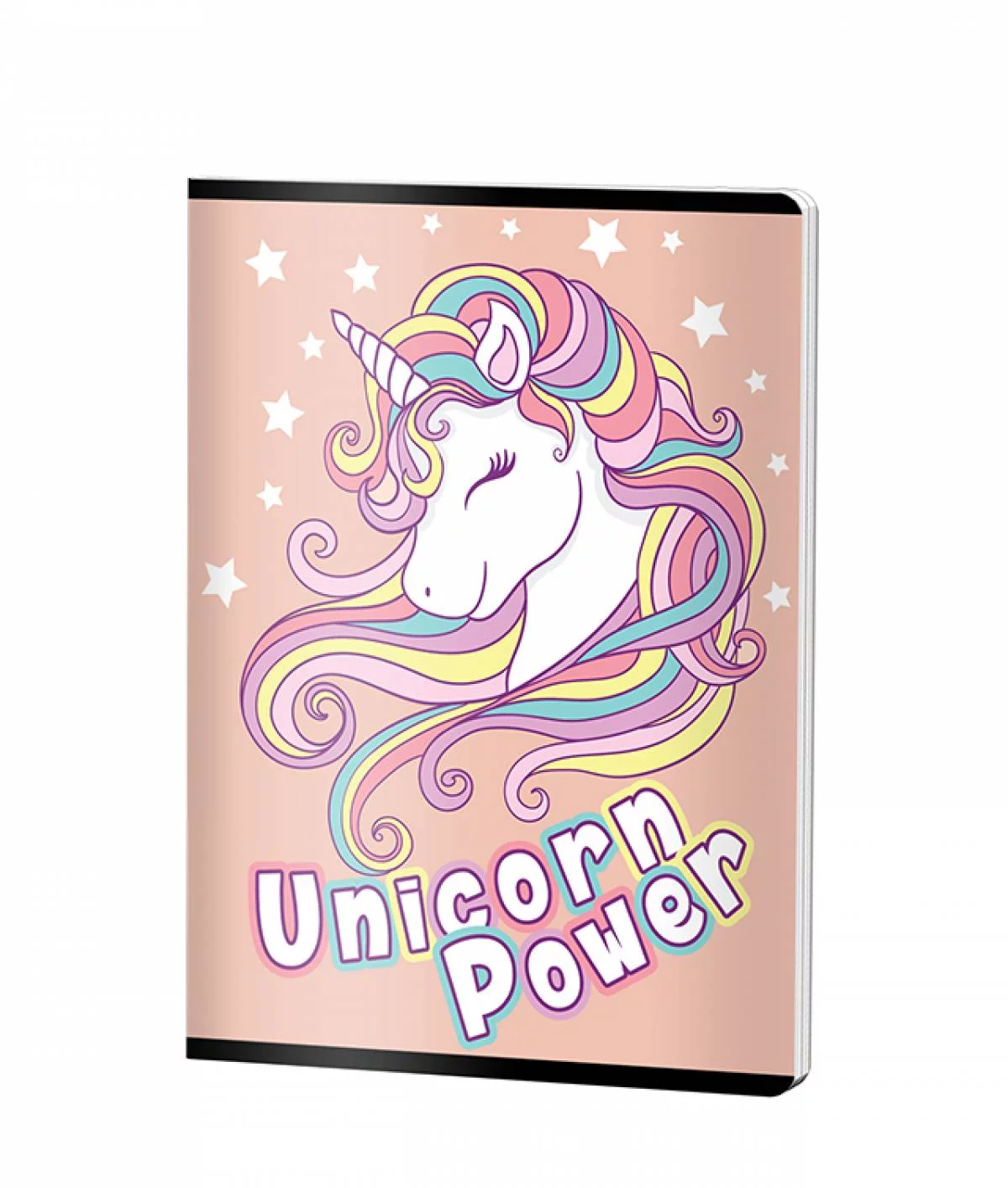 Caietul Pigna pentru matematică, format A5, este perfect pentru fete, având o copertă din plastic rezistent decorată cu un design unicorn colorat pe fond roz cu stele albe. Conține 48 de file de 70 grame, ideal pentru notițe și exerciții matematice, fiind capsate pentru o utilizare ușoară la școală sau acasă.