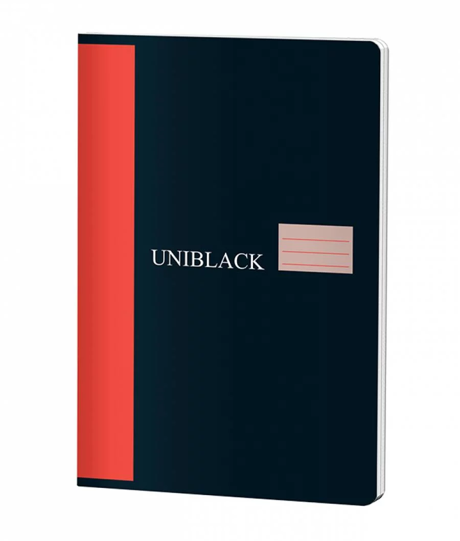 Caiet dictando Uniblack format A4 studentesc cu 60 file și hârtie de 70 grame, ideal pentru notițe și cursuri. Designul modern în negru și roșu oferă un aspect elegant, iar coperta rezistentă asigură protecție optimă pentru conținut, fiind perfect pentru studenți și elevi.