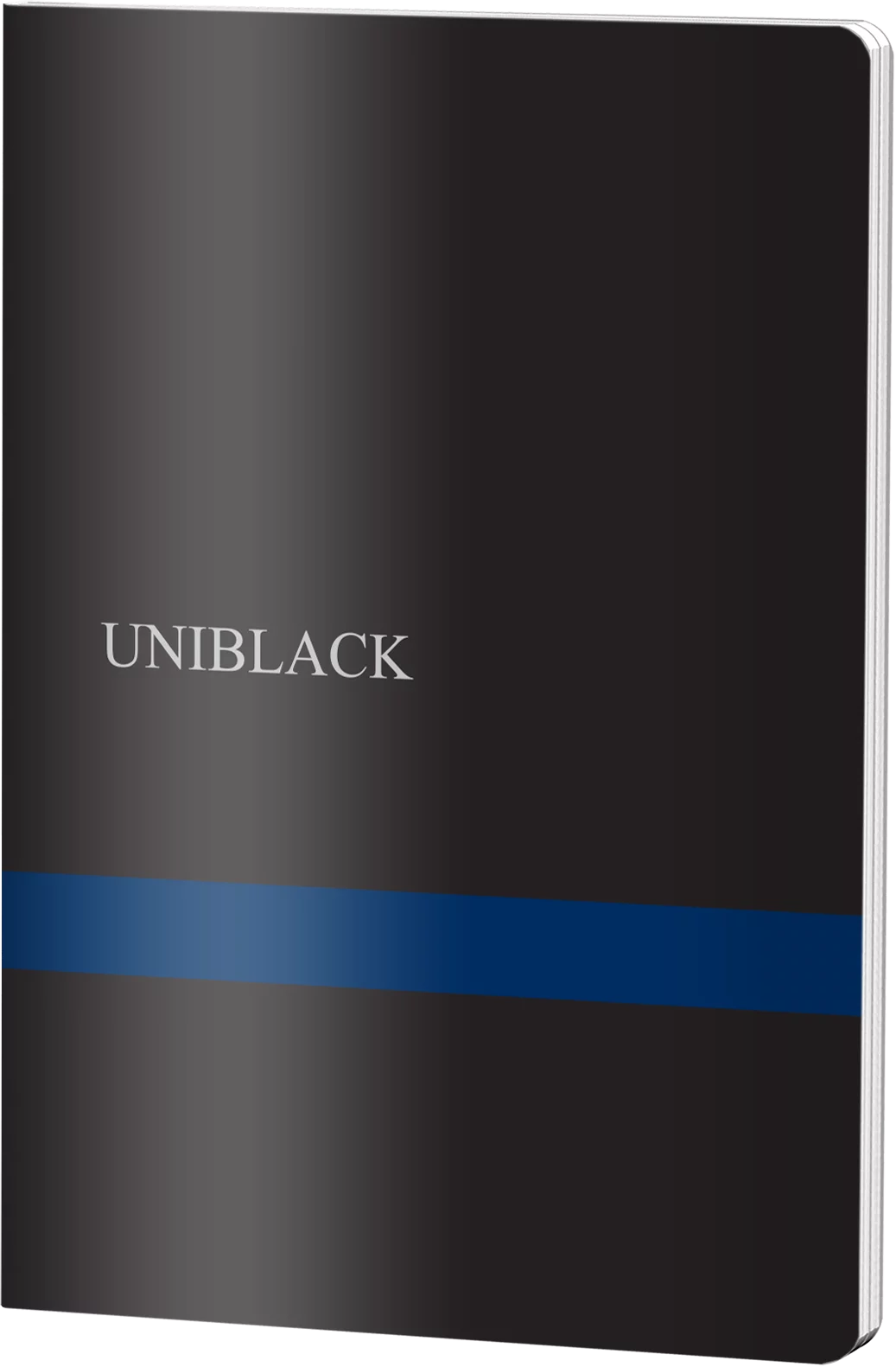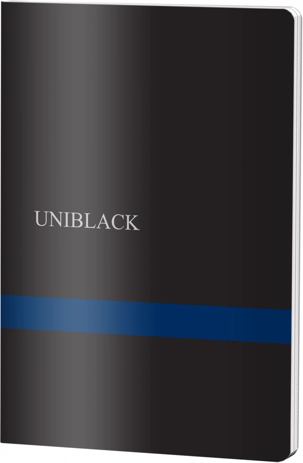 Caiet dictando UNIBLACK format A4 cu copertă din plastic rezistent în negru și albastru, conține 60 de file din hârtie de 60 grame, ideal pentru studenți și elevi. Design elegant minimalist cu bandă albastră decorativă, perfect pentru notițe, lecții și teme.