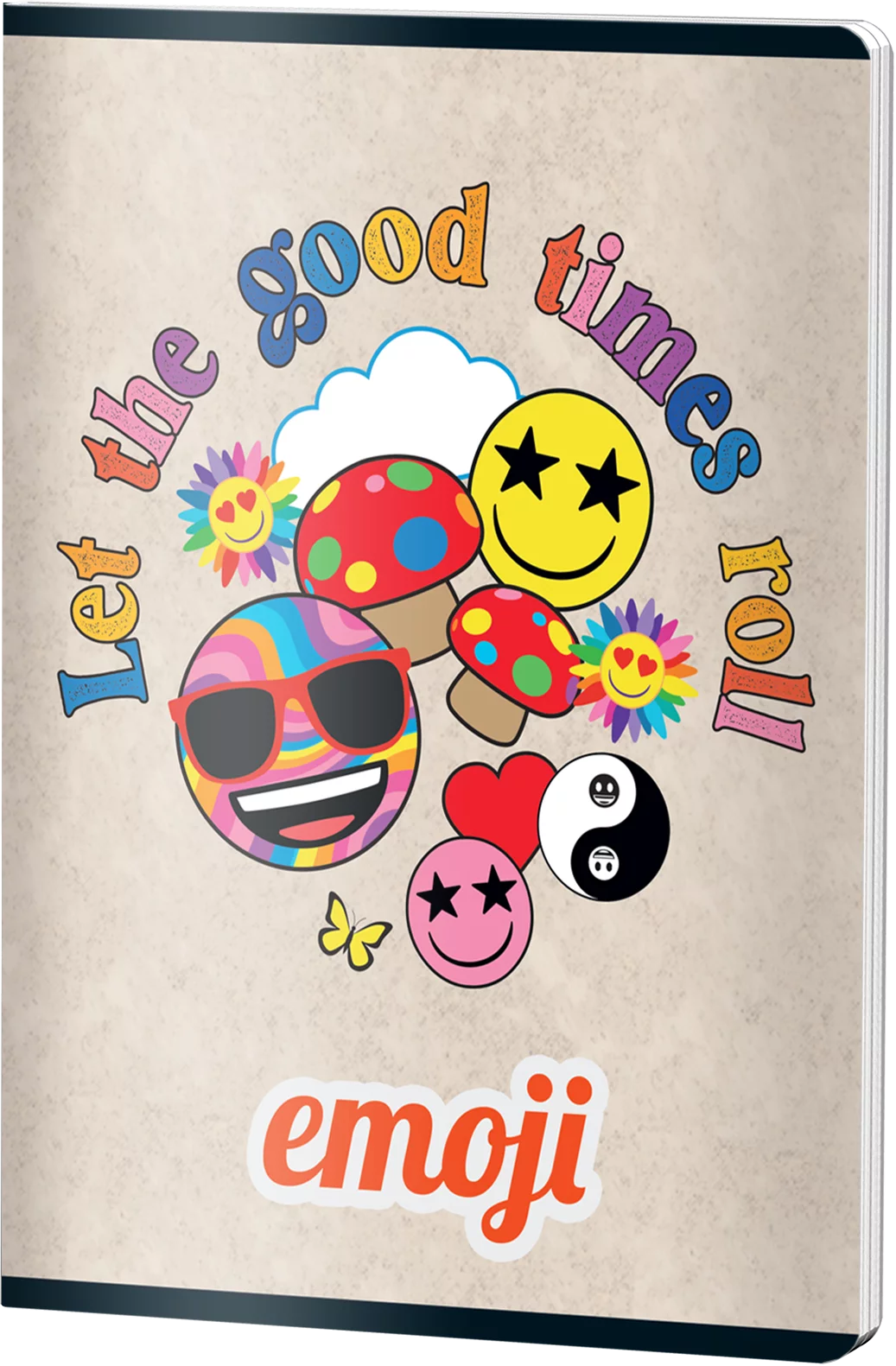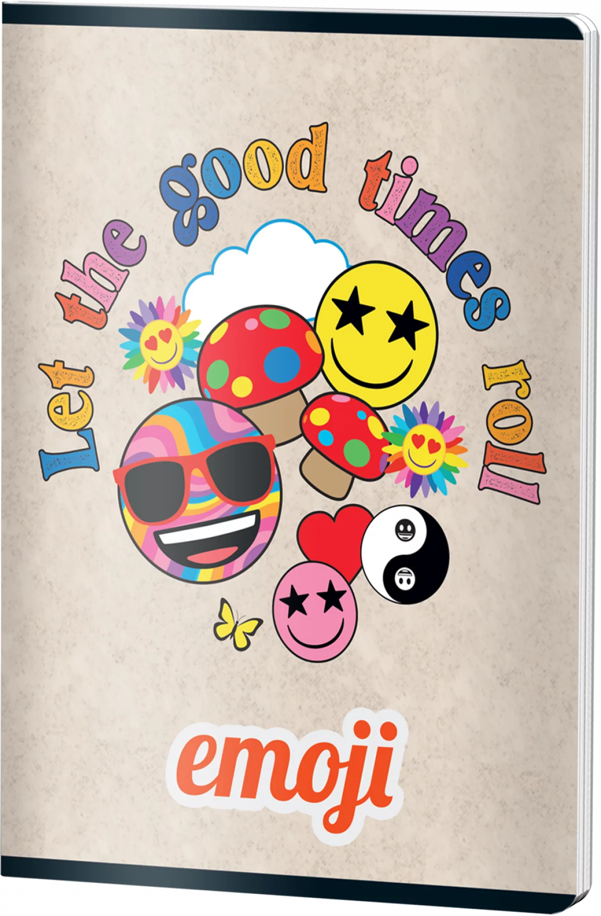 Caietul dictando EMOJI CLASIC Good Times, format A5, cu 48 de file de 70 grame, aduce culoare și bună dispoziție în activitățile școlare. Coperta veselă prezintă emoji-uri colorate, ochelari de soare și mesajul motivațional, perfectă pentru elevi și adolescenți care caută papetărie originală și plină de personalitate.
