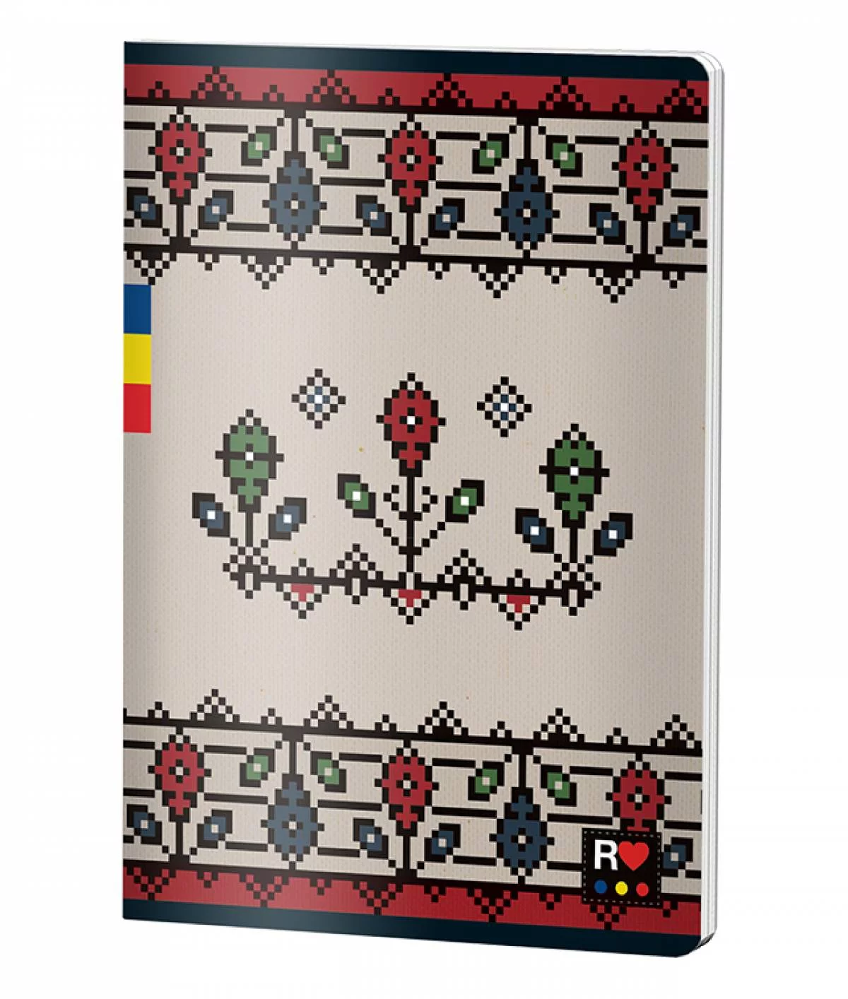 Caiet dictando A5 cu design ETHNO tradițional, cu motive folclorice în roșu, albastru și verde. Conține 48 de file cu hârtie de 70 grame, ideal pentru notițe zilnice, școală sau birou. Coperta rezistentă cu modele etnice autentice adaugă un stil unic și cultural fiecărei pagini.