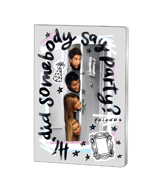 Caiet dictando FRIENDS format A5 cu 48 de file și hârtie de 70 grame, perfect pentru notițe și schiță. Coperta prezintă design iconic cu personajele serialului și elemente grafice moderne, ideal pentru fani și școală. Caiet de calitate cu copertă rezistentă și finisaj atractiv.