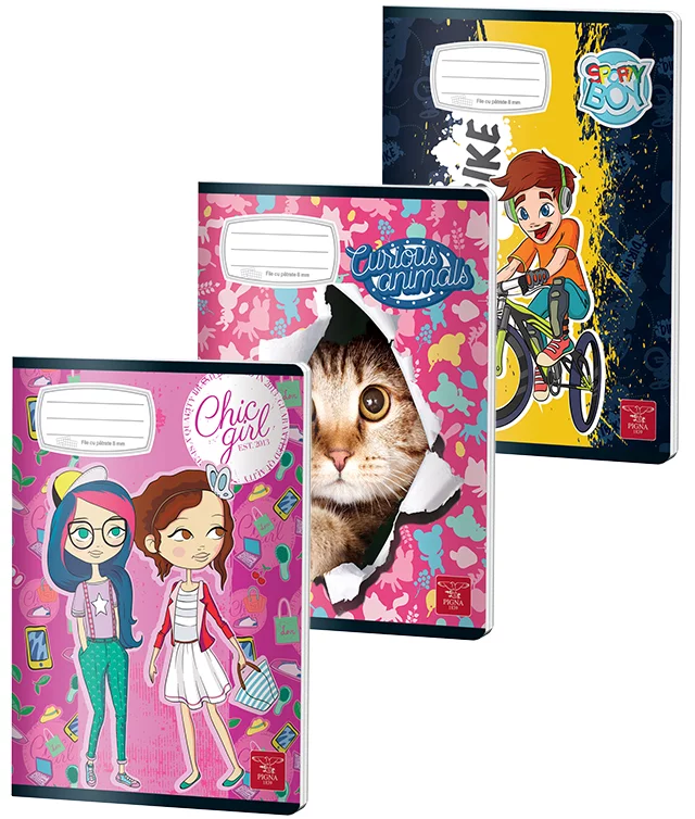 Caiet de geometrie format A5 cu 24 de file și hârtie de 80g, cu pătrățele de 8x8mm, ideal pentru matematică și desen tehnic. Coperta color cu design atractiv pentru copii, disponibil în variante cu personaje vesele și animale. Perfect pentru școală, oferă spațiu optim pentru exerciții și notițe.