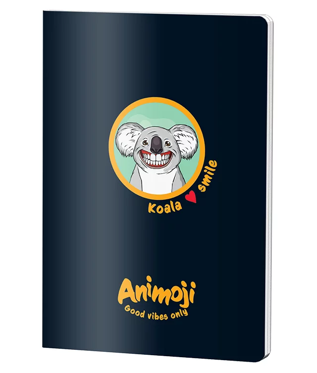 Caietul de matematică ANIMOJI Koala format A4 cu 80 de file de 60 grame oferă un design modern cu ilustrație amuzantă pe copertă albastru închis. Ideal pentru școală, acest caiet cu dictando matematic combină calitatea hârtiei cu un aspect vesel și prietenos, perfect pentru elevii care doresc rechizite colorate și practice.