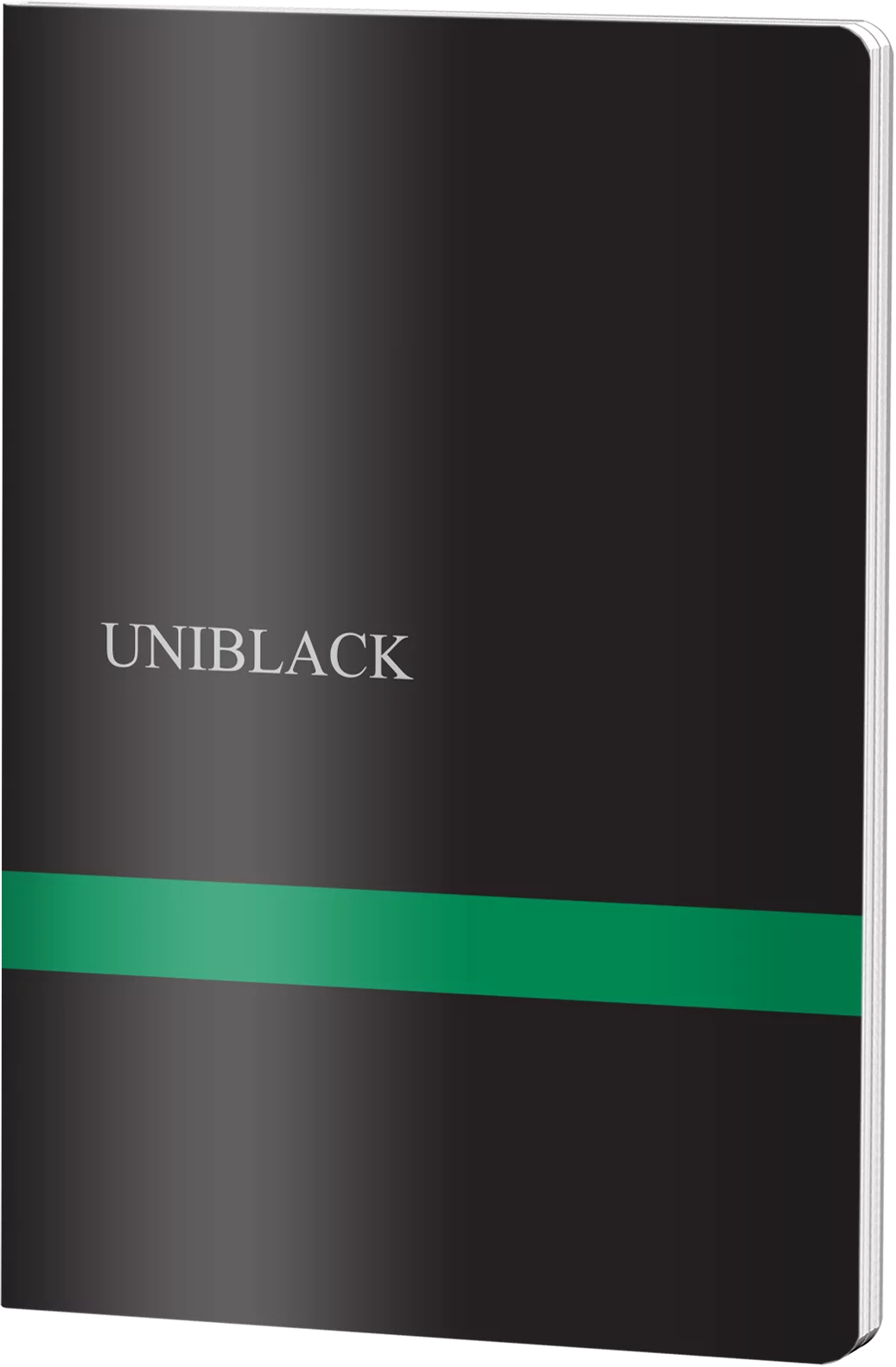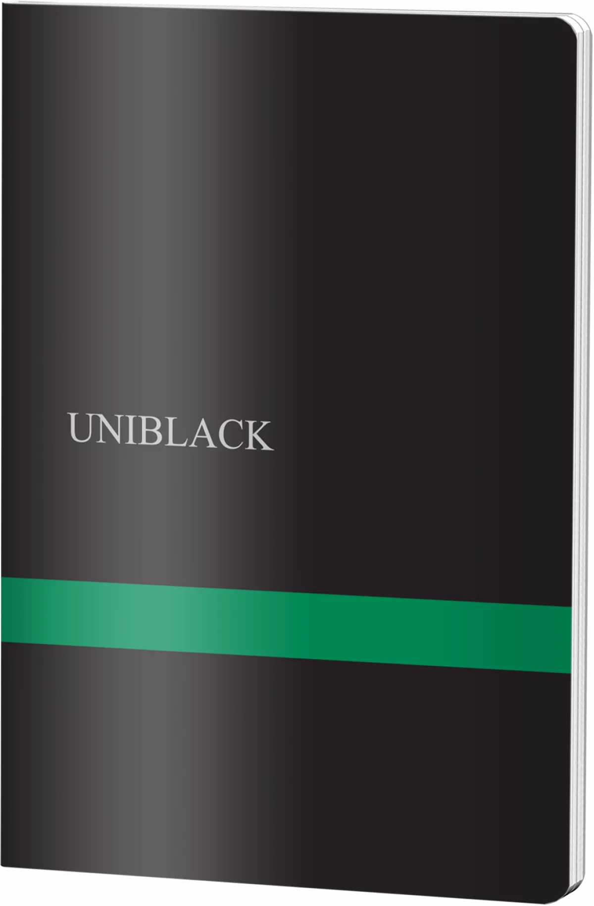 Caiet de matematică UNIBLACK format A4 studentesc, cu copertă din plastic rezistentă în negru și bandă verde elegantă. Conține 60 de file cu hârtie de 60g/m², ideal pentru studenți și elevi. Design modern și practic pentru notițe matematice și tehnice.