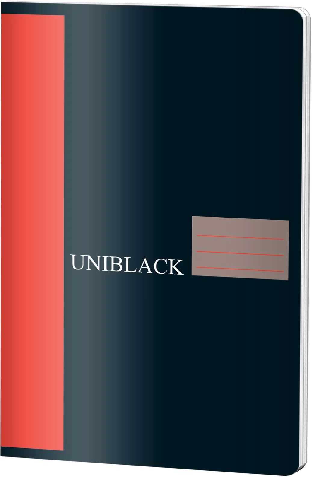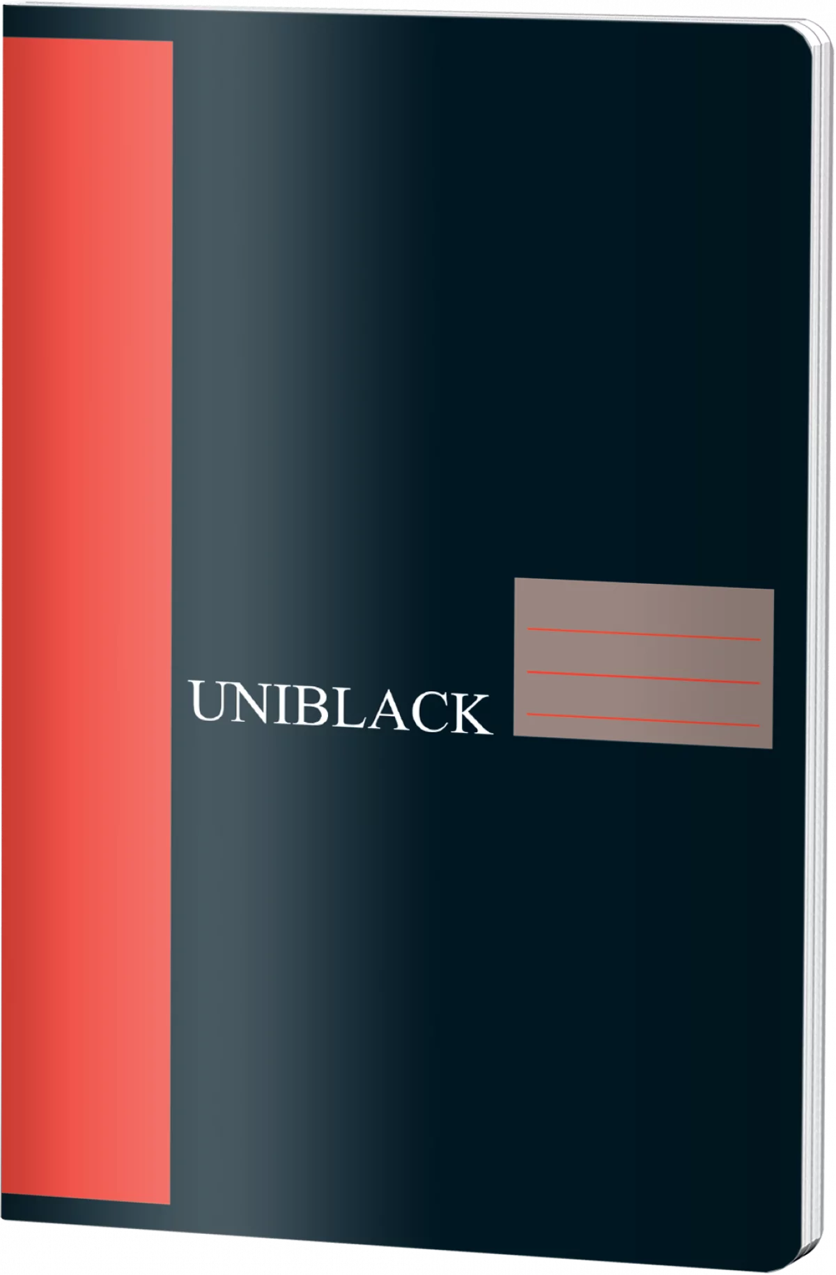 Caiet Uniblack pentru matematică, format A5, cu 48 de file din hârtie de 70 grame, design modern negru cu detalii roșii. Ideal pentru notițe matematice, oferă spațiu generos pentru calcule și grafice, perfect pentru elevi și studenți.