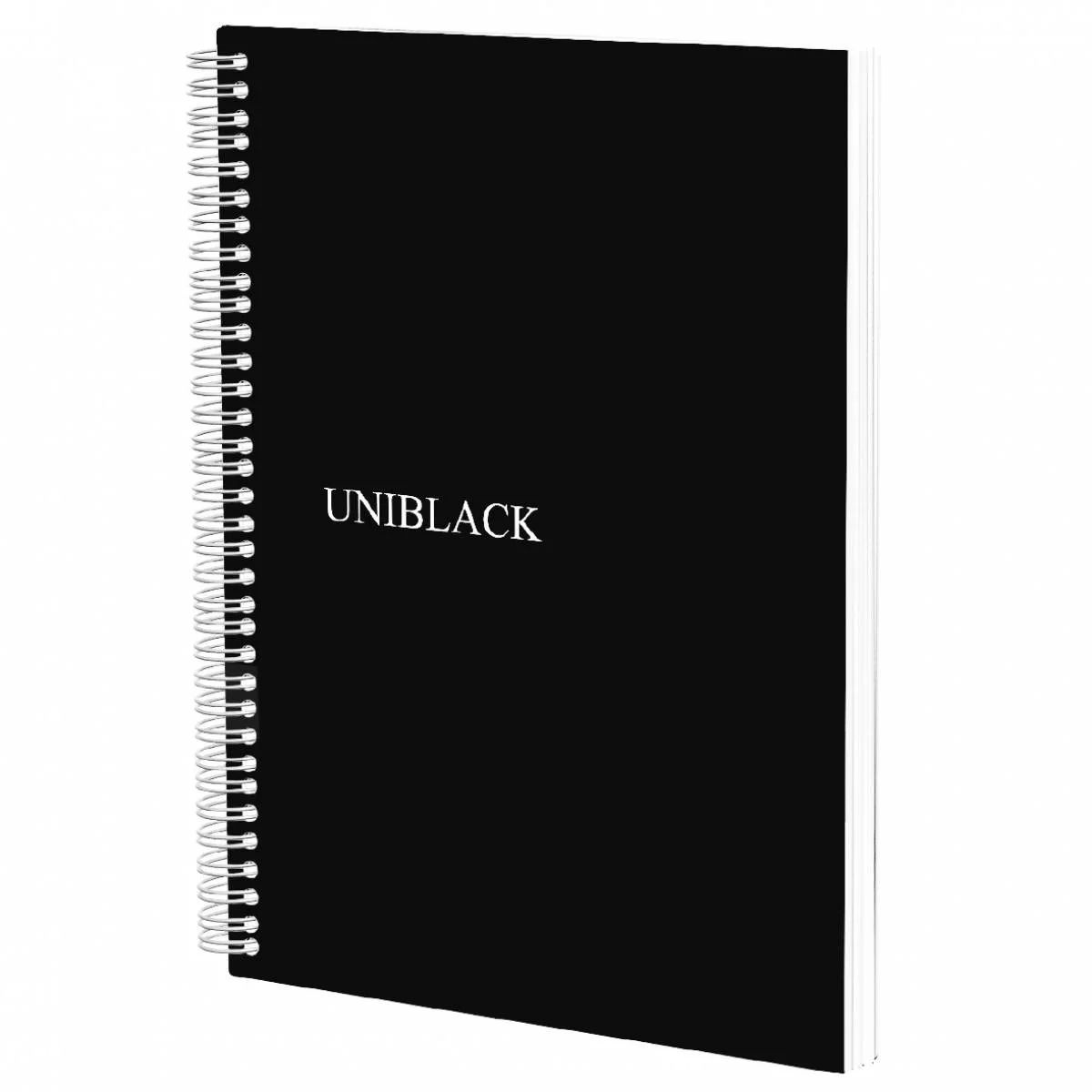 Caiet cu spiră PIGNA UNIBLACK, format A4, cu copertă din plastic negru elegant și 120 de file pentru matematică de 70 gr. Design minimalist și modern, ideal pentru studenți și profesioniști, oferind rezistență sporită și organizare eficientă a notițelor.