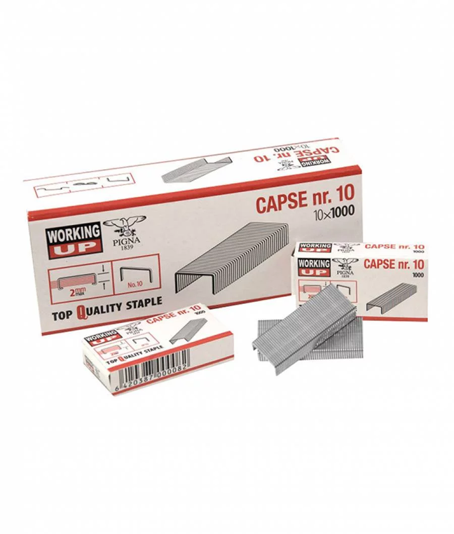 Capse metalice WorkingUp nr. 24/6, ideale pentru capsatoare standard de birou. Fabricate din oțel rezistent, aceste capse asigură fixare sigură pentru documente de până la 30 de coli. Potrivite pentru utilizare profesională și personală, oferind performanță constantă.