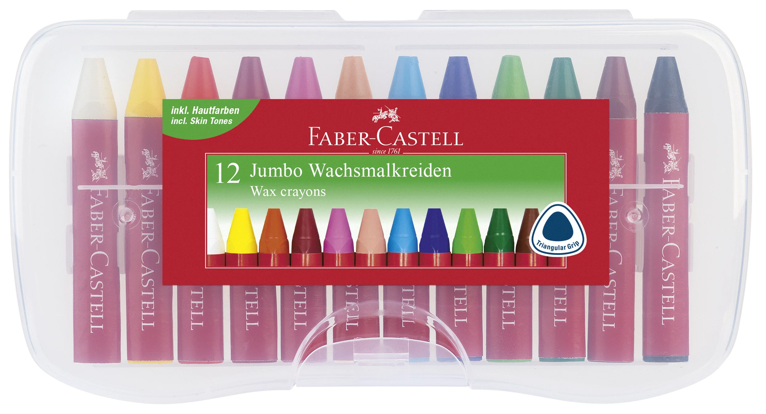 Creioane Cerate 12 Culori Jumbo Cutie Plastic Faber-Castell