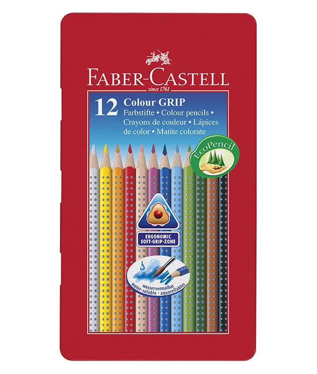 Forma triunghiulara ergonomica. Zona anti-alunecare GRIP patentata, cu puncte mici de masaj. Culori luminoase. Culori lavabile. Spatiu special pentru inscriptionarea numelui. Tehnologia speciala de lipire a minei de lemn (SV) previne ruperea. Vopsea pe baza de apa, pentru protejarea mediului si a sanatatii copiilor. Calitate deosebita, lemn de consistenta moale o garantie pentru ascutirea si utilizarea cu usurinta. Creioanele colorate GRIP 2001, mai mult decat creioane colorate