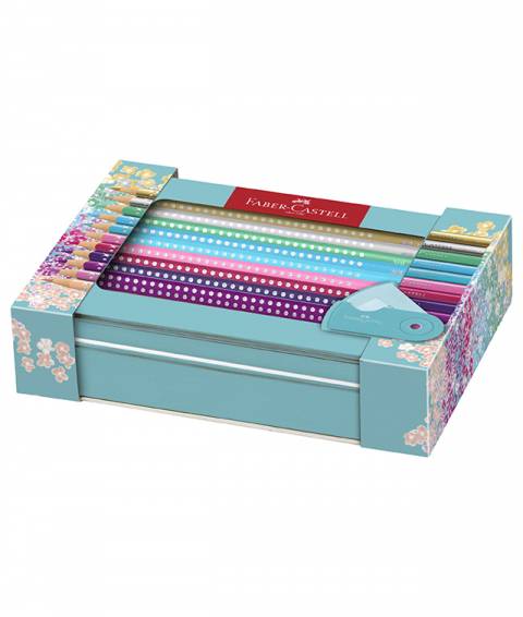 Creioane Colorate Sparkle cu Ascutitoare Sleeve Faber-Castell in set Cadou 20