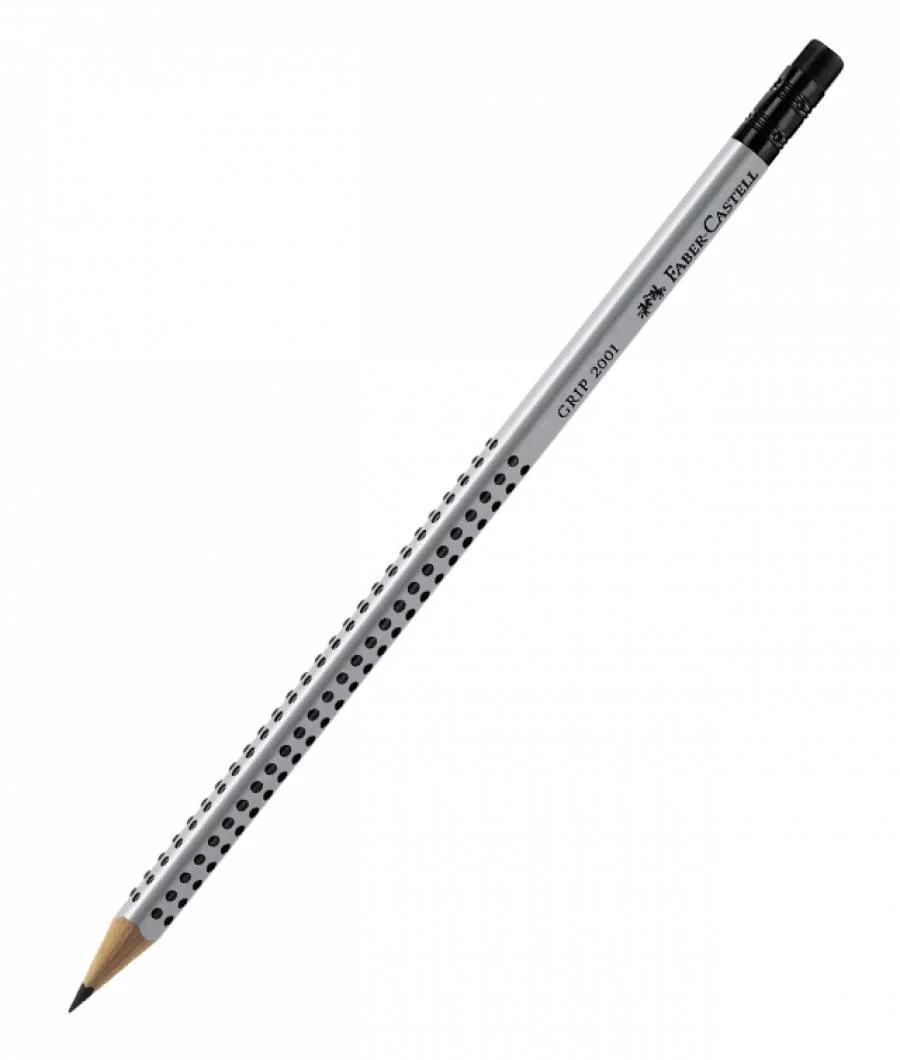 Creionul grafit Faber-Castell Grip 2001 combină calitatea superioară a minei de grafit cu zona ergonomică cu puncte antiderapante pentru confort maxim la scris. Corpul argintiu elegant și guma de sters integrată fac din acest creion instrumentul perfect pentru școală, birou sau desen tehnic.