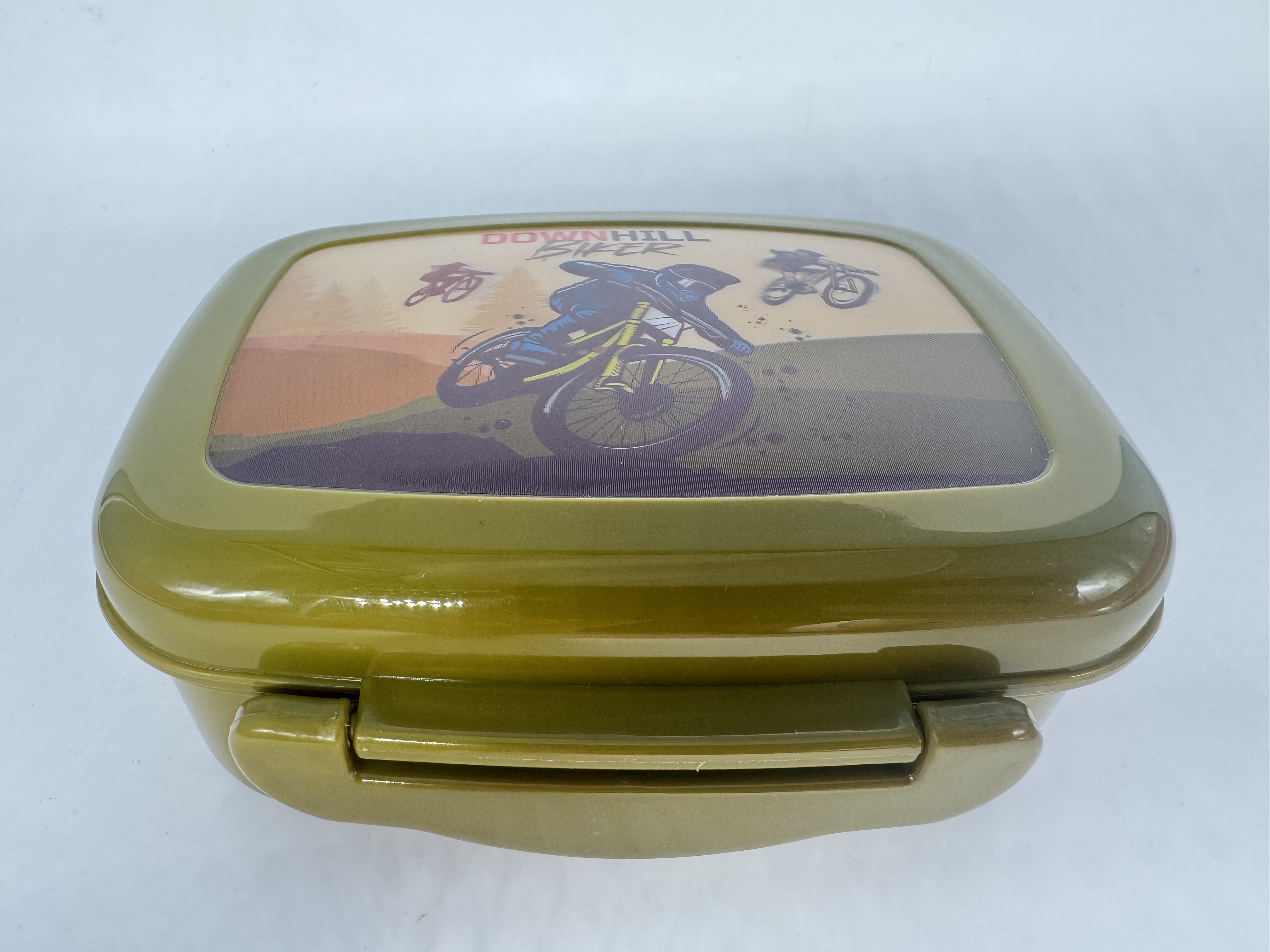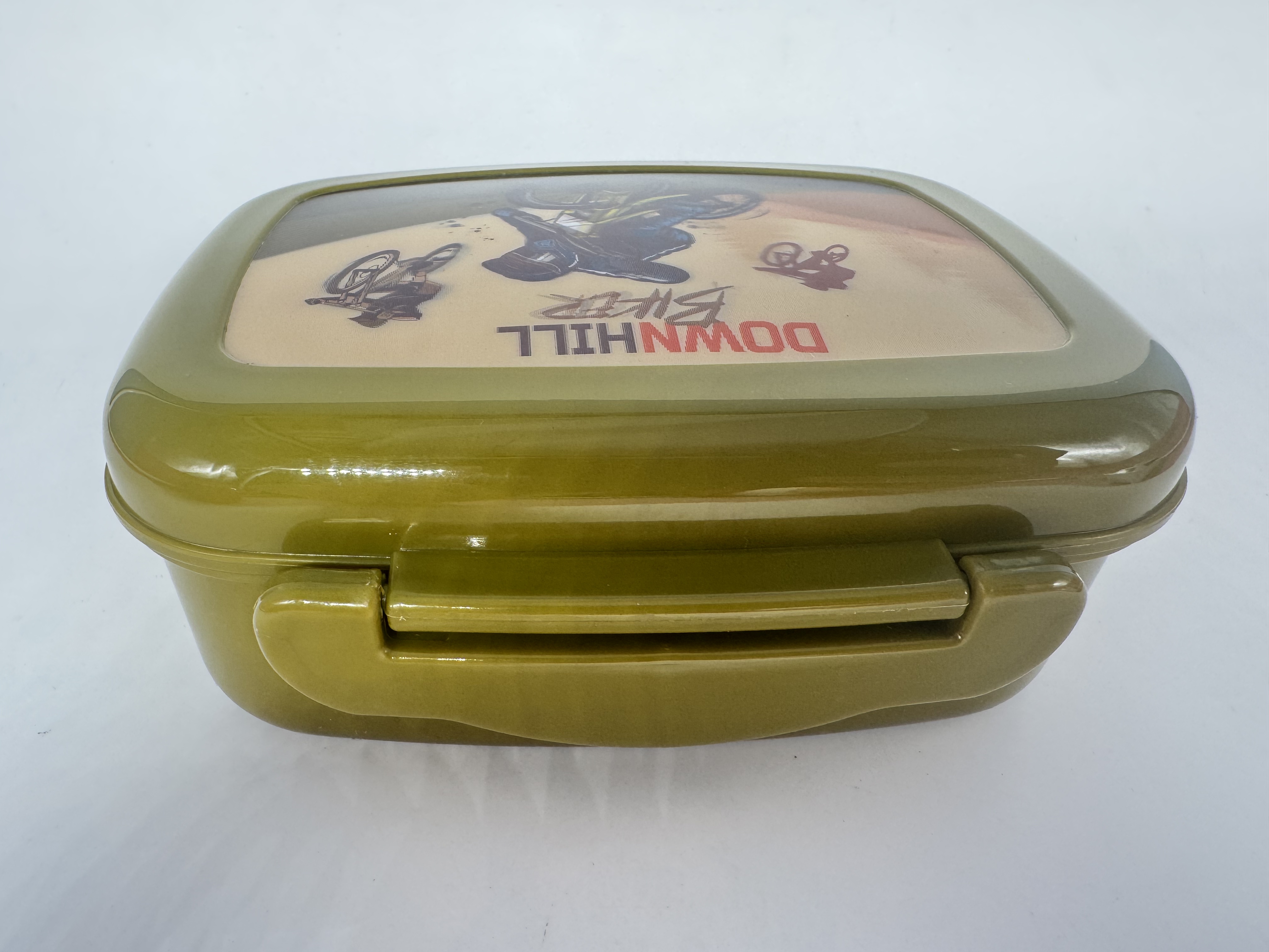Cutie sandwich Ride Kaki, dimensiuni 14.5x12.5x5.5cm, culoare verde oliv, ideală pentru păstrarea și transportul sandvișurilor. Design compact și rezistent, perfectă pentru școală, birou sau drumeții, cu închidere sigură ce menține prospețimea alimentelor.