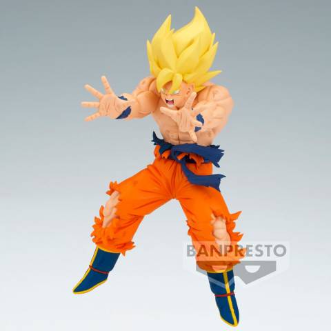 Figurina Dragon Ball Z Match Makers prezintă Super Saiyan Son Goku în poza sa iconică de luptă, cu părul blond caracteristic și costumul portocaliu detaliat. Această statuetă colecționabilă de 14 cm, realizată din PVC de calitate superioară, captează perfect energia și dinamismul seriei Dragon Ball Z, fiind ideală pentru fanii anime și colecționarii pasionați.