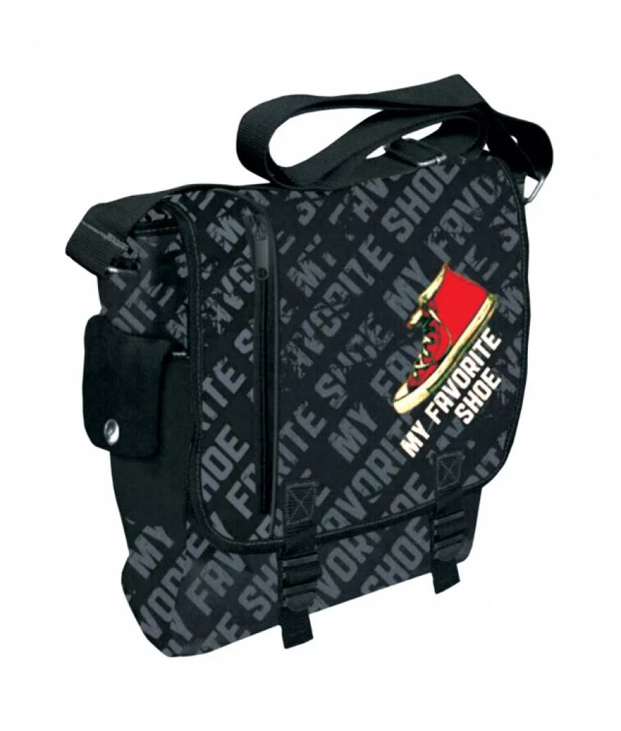 Geanta de umar patrata My Favorite Shoe este perfecta pentru tineri activi, cu design negru modern si imprimeu grafic cu tenisi rosii. Confectionata din material textil rezistent, aceasta geanta crossbody ofera multiple buzunare si compartimente, ideal pentru scoala sau calatorii.