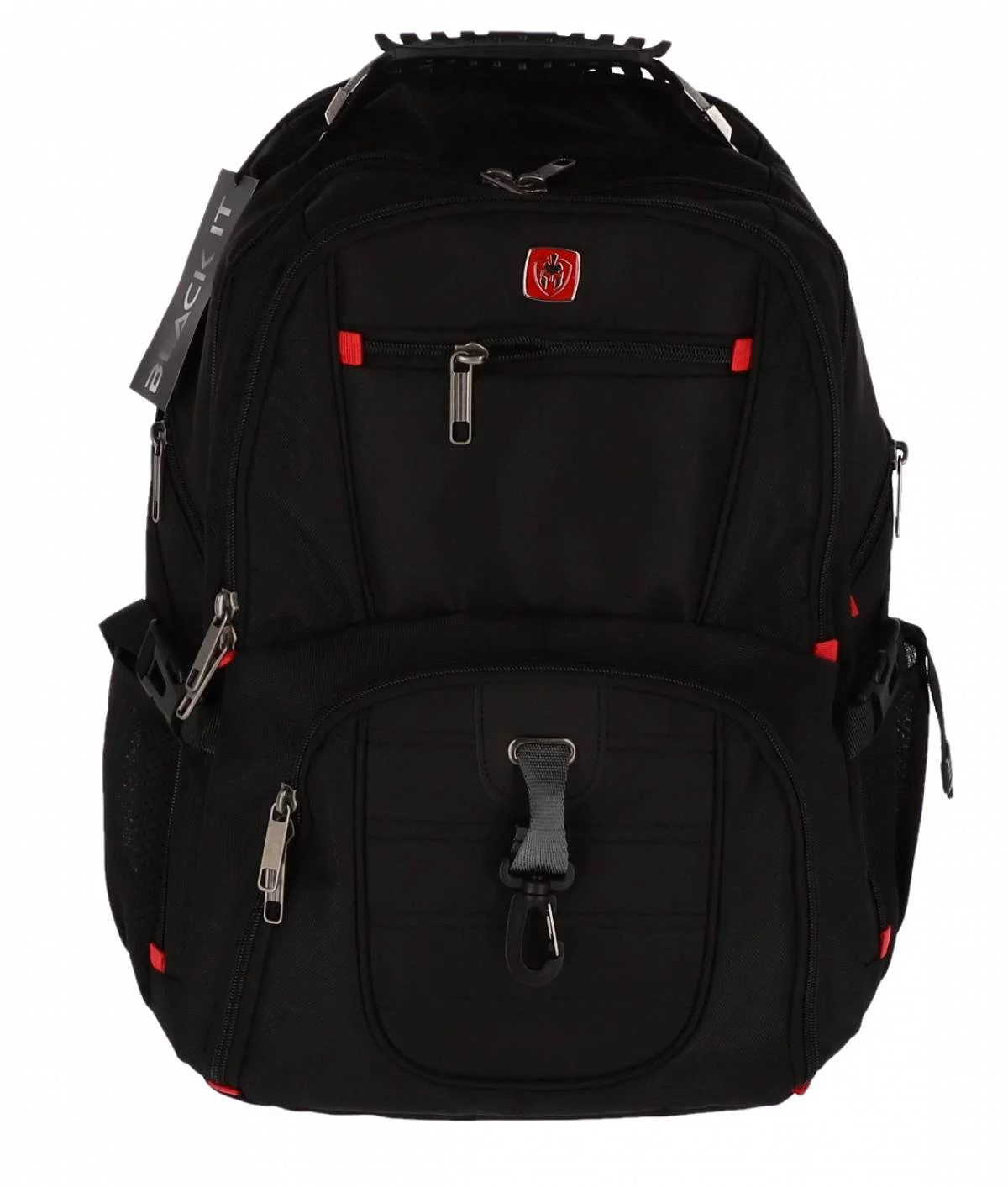Ghiozdan spacios BLACK IT pentru laptop, cu 4 fermoare și design ergonomic, ideal pentru școală sau birou. Dimensiuni generoase de 50×35×25 cm oferă spațiu amplu pentru laptop, documente și accesorii. Material rezistent de culoare neagră, bretele ajustabile și multiple compartimente pentru organizare optimă.