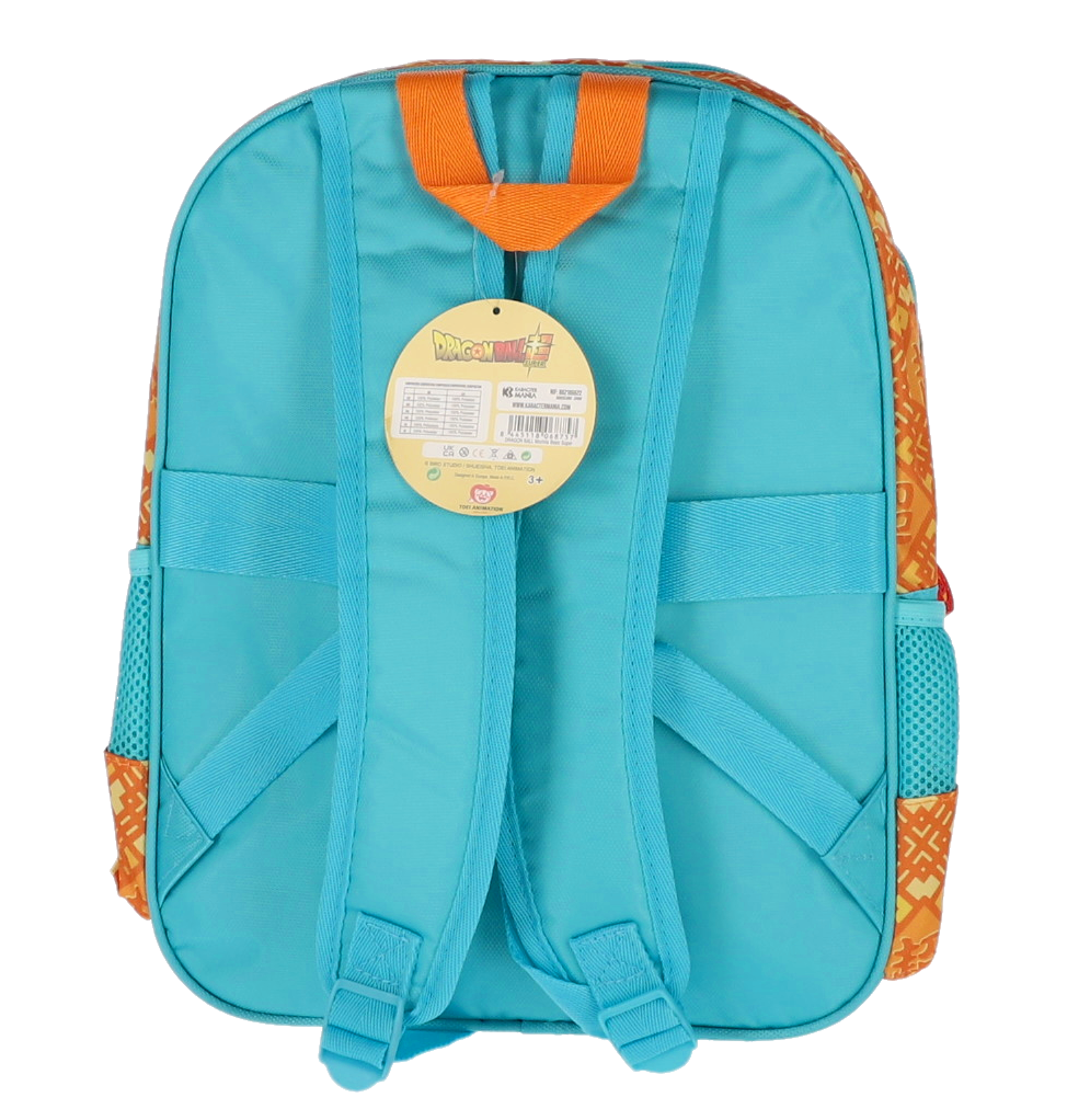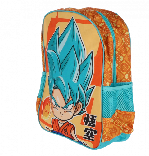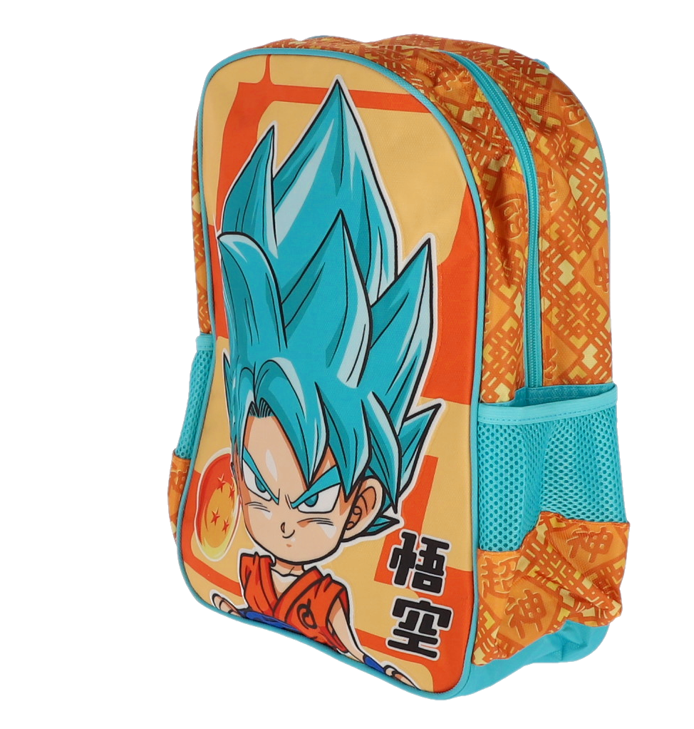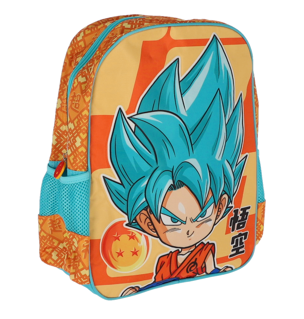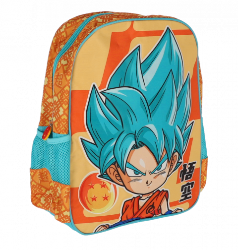 Ghiozdan școlar Dragon Ball Basic Super cu design colorat și personaj iconic cu părul albastru. Rucsac rezistent cu bretele ajustabile, buzunare laterale din plasă și imprimeu vibrant portocaliu-galben, perfect pentru fanii seriei anime și copiii activi.