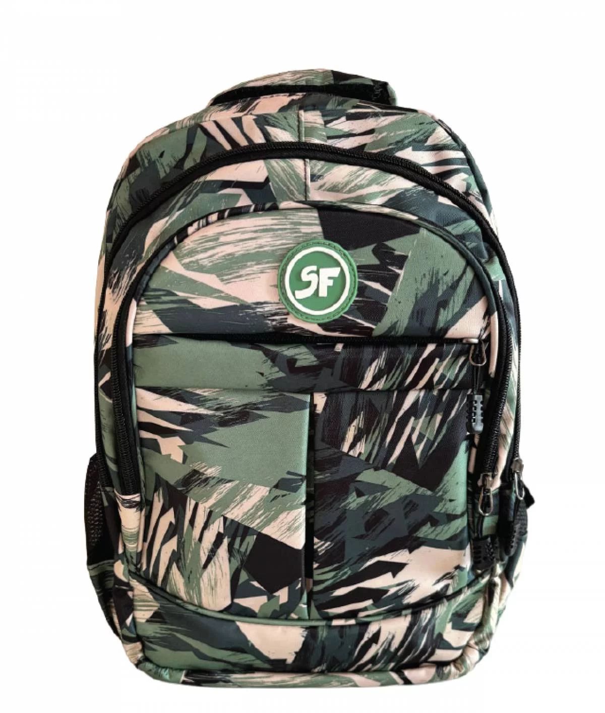 Ghiozdan laptop SF 4F cu design camuflaj verde, dimensiuni 42×37×13 cm și greutate redusă de 0,5 kg. Rucsac rezistent cu compartimente multiple pentru laptop și accesorii, ideal pentru școală, facultate sau călătorii. Material durabil, bretele ajustabile și buzunare practice pentru organizare optimă.