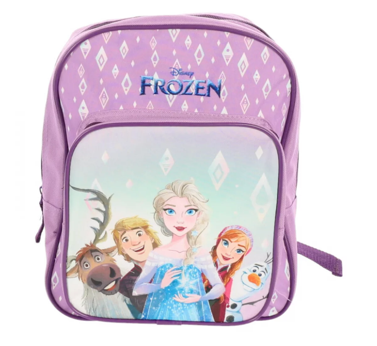 Rucsac de 31 cm cu buzunar La Reine des Neiges / Frozen mov, Material: Poliester, Dimensiuni (cm): 24x8x31. 1 compartiment cu fermoar, 1 buzunar frontal cu fermoar. Bretele pentru umăr spumate.