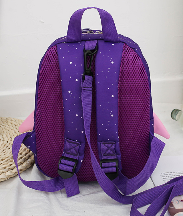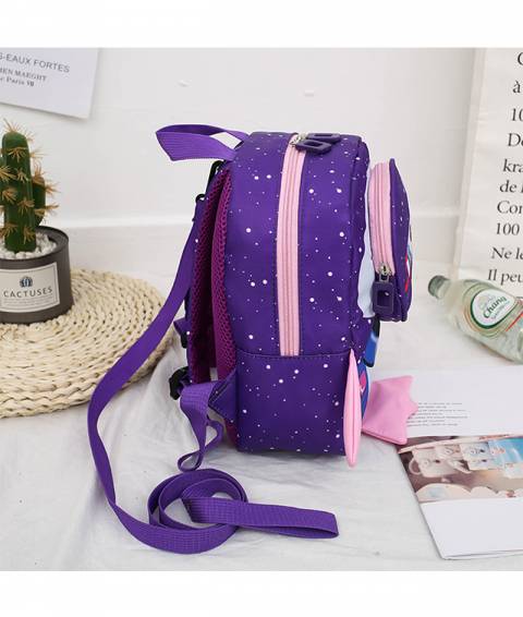 Ghiozdan prescolari 2 fermoare. Spate buretat. Bretele buretate si ajustabile. Agatatoare. Material poliester, impermeabil si rezistent la zgarieturi. Dimensiuni: 27cm inaltime x 21cm latime x 10cm adancime. Greutate: 0.20 kg. Culoare mov.