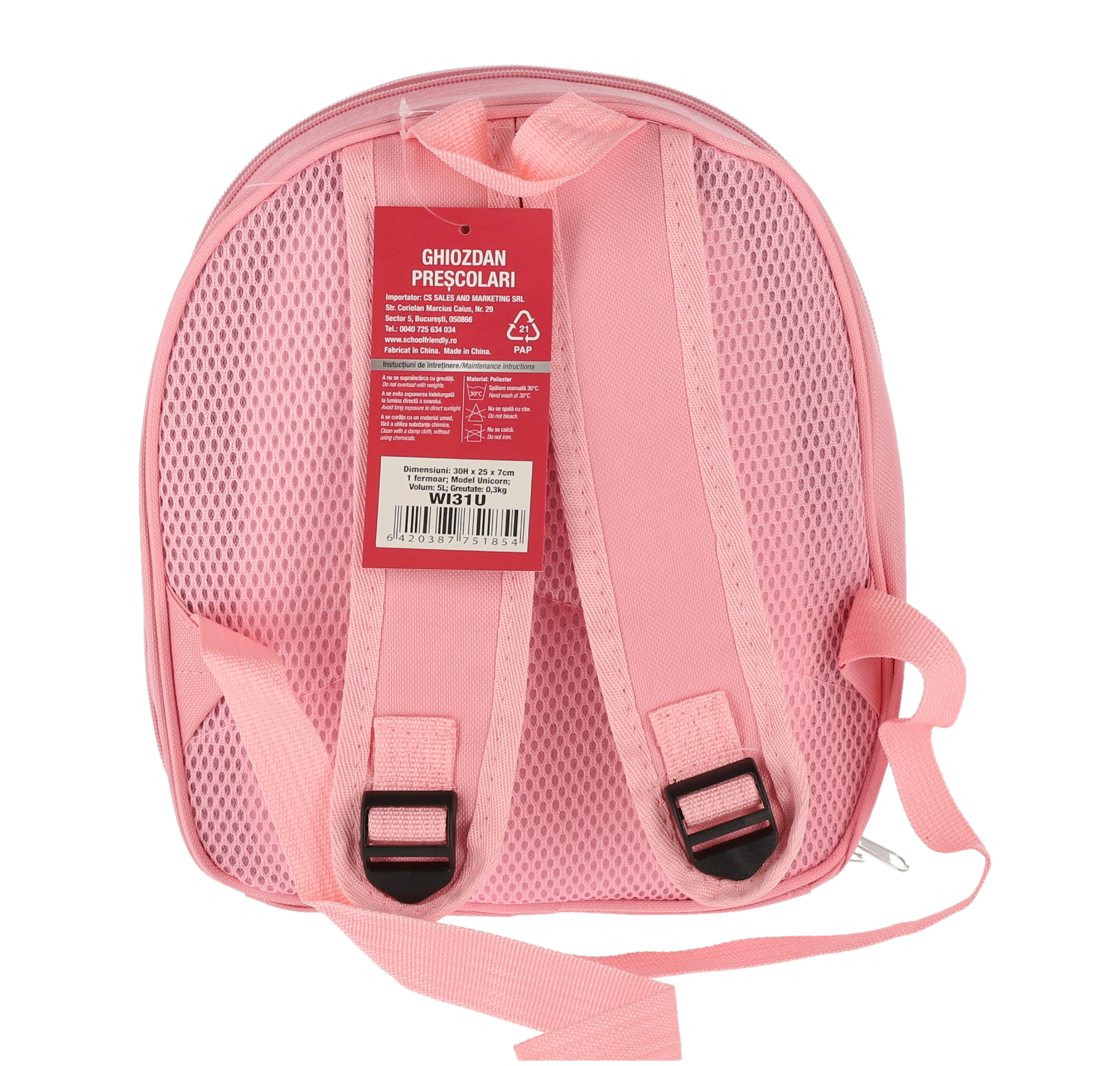 Descoperă ghiozdanul perfect pentru micuțul tău aventurier! Ghiozdanul preșcolar Unicorn SF în nuanțe de mov, echipat cu un fermoar, este partenerul ideal pentru fiecare zi plină de descoperiri la școală sau în călătorii.