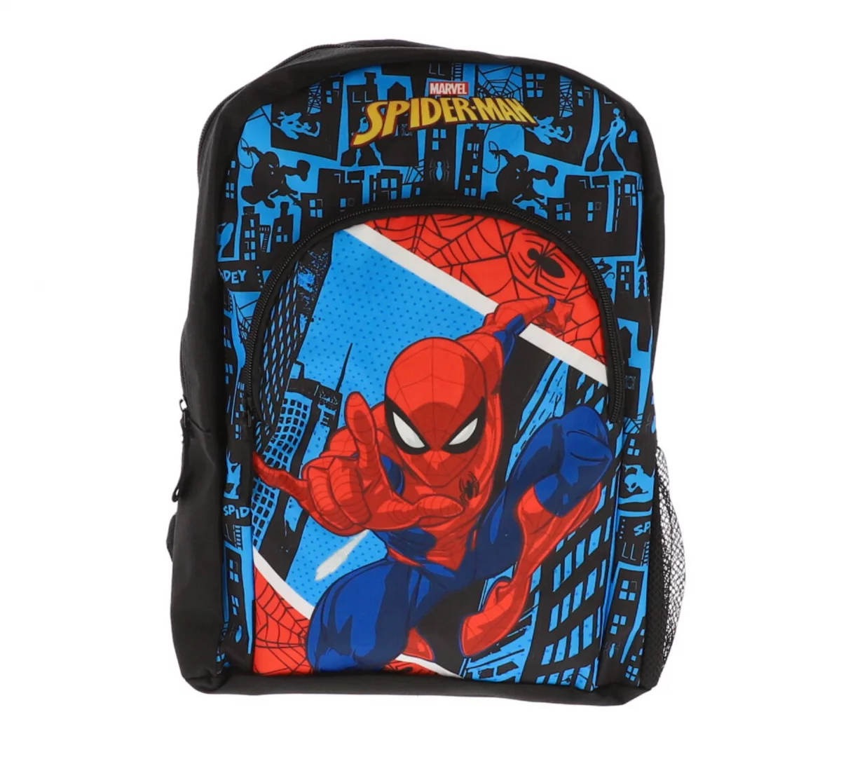 Rucsac de 37 cm cu buzunar Spider-Man albastru, Material: Poliester, Dimensiuni (cm): 28x11x37. 1 compartiment cu fermoar, 1 buzunar frontal cu fermoar. Bretele pentru umăr spumate. Partea din spate cu spumă.