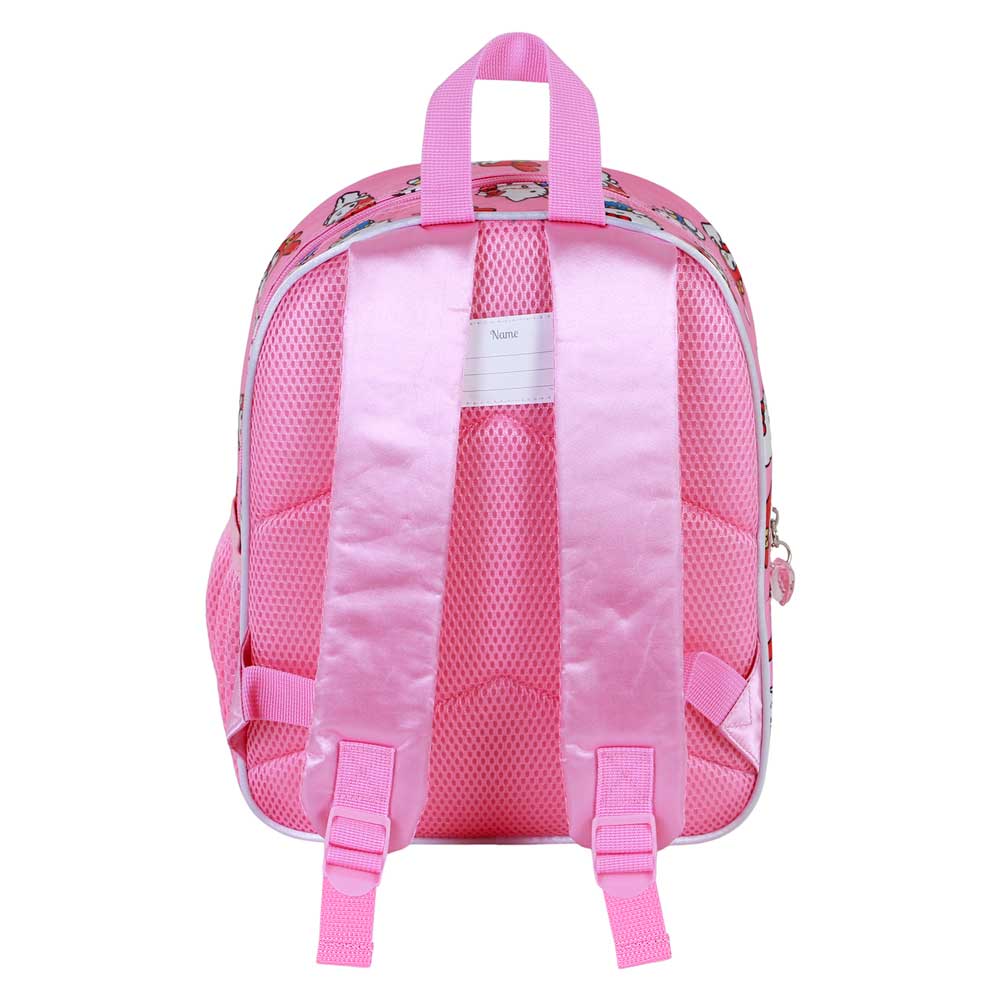 Ghiozdan Hello Kitty Lovely Elite 3D, roz; Design frontal in relief si buzunar lateral din plasa; Bretele captusite la spate si la umar; Include o eticheta cu numele in spate; Dimensiuni: 10 x 25 x 30 cm.