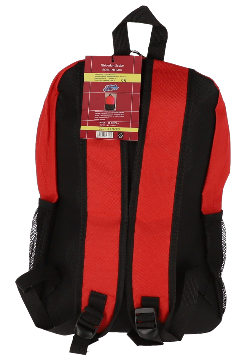 Ghiozdan școlar roșu și negru cu 2 compartimente, dimensiuni 42×29×13 cm, ideal pentru elevi. Design modern bicolor cu spate ergonomic, bretele ajustabile și spațiu generos pentru cărți, caiete și rechizite. Material rezistent, perfect pentru utilizare zilnică la școală.