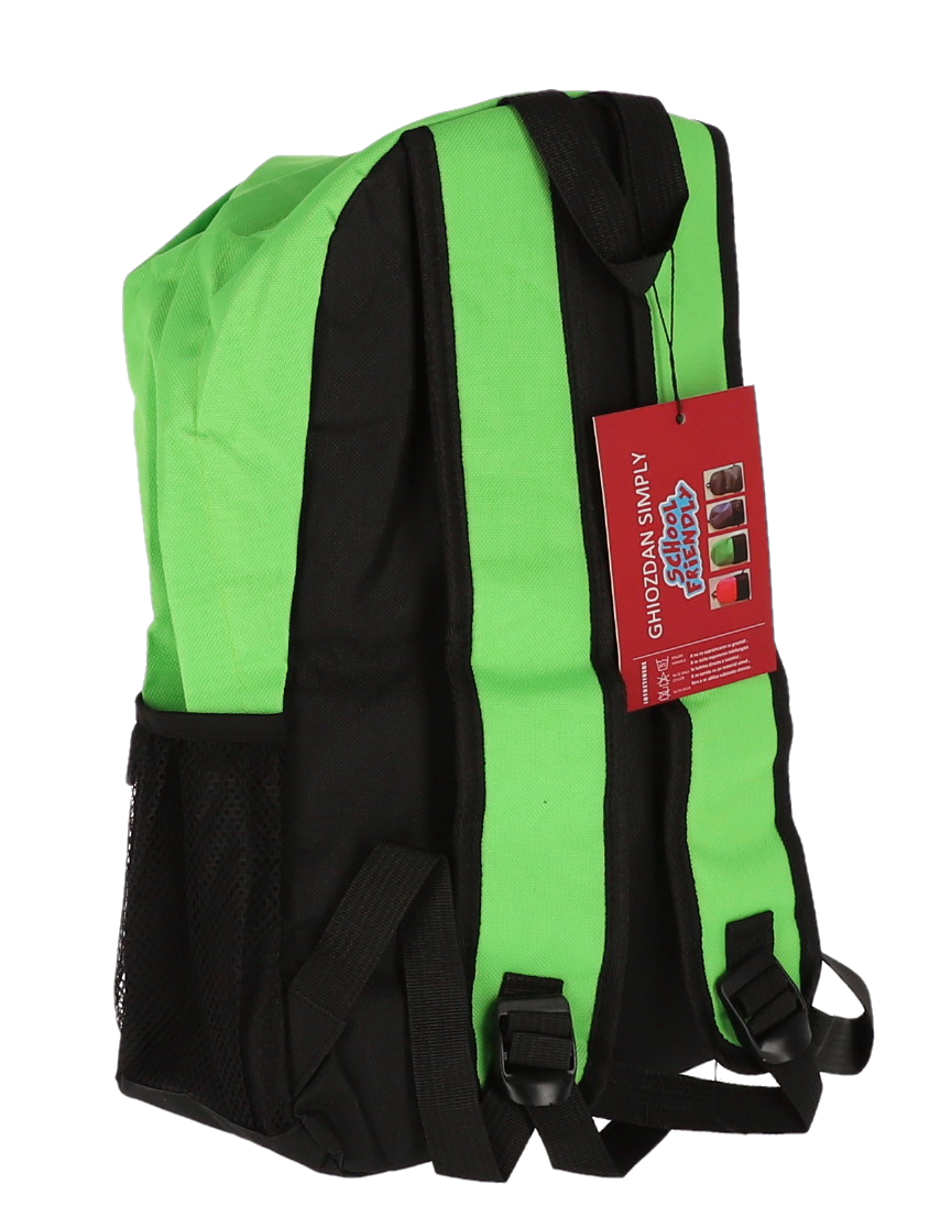 Ghiozdan școlar verde neon cu design bicolor modern, compartiment dublu (2F) și dimensiuni generoase de 42×29×13 cm. Ideal pentru elevi și studenți, oferă spațiu amplu de depozitare, bretele ajustabile pentru confort maxim și material rezistent. Perfectă combinație între funcționalitate și stil vibrant.