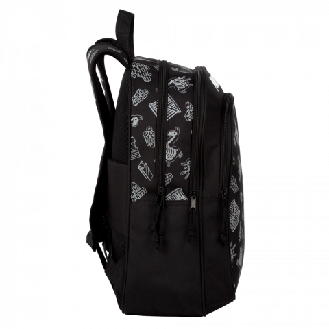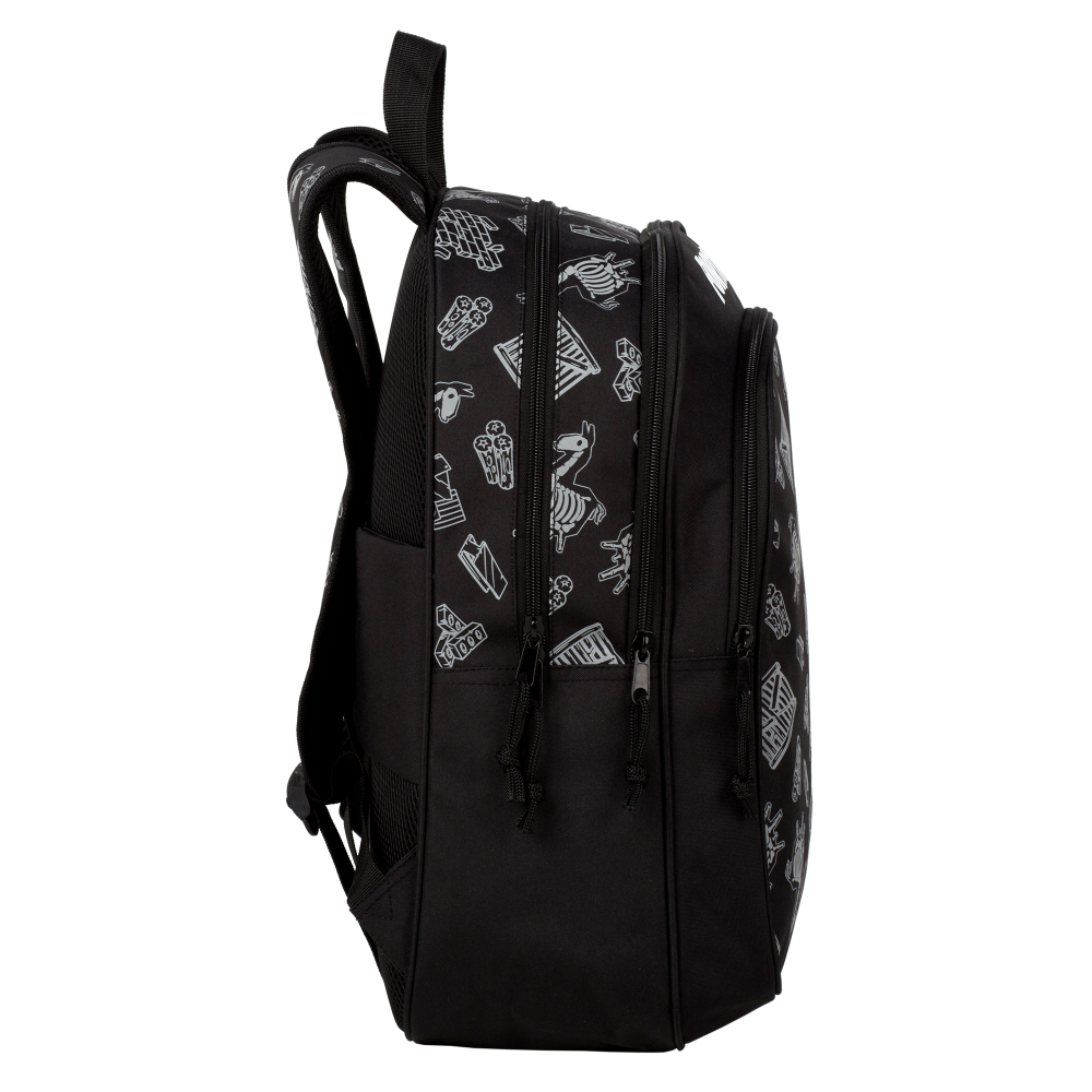 - Design Fortnite Distinctiv: Ghiozdanul Fortnite Negru impresionează cu designul specific și simbolurile jocului Fortnite, aducând o notă distinctivă.