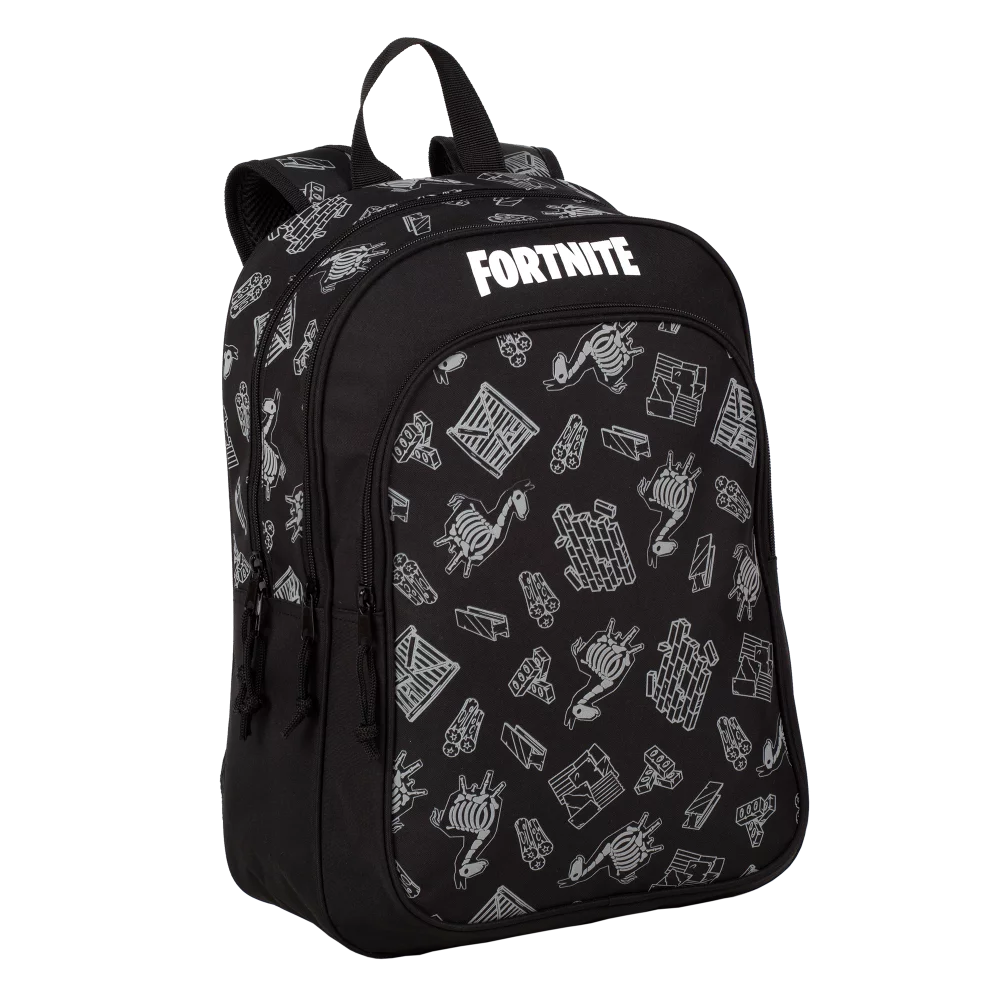 Ghiozdan Scolar, Fortnite, 2 Fermoare, 30Hx30x7cm, Negru
