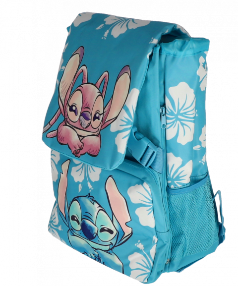 - Ghiozdan de culoare albastră, decorat cu ilustrații adorabile ale personajelor Lilo și Stitch, perfect pentru fanii acestora.