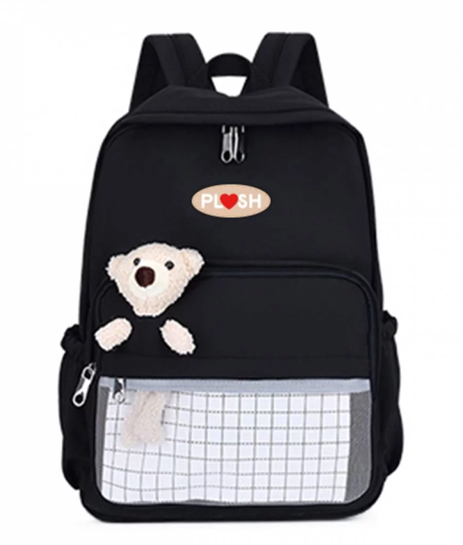 Ghiozdan SCOLAR negru cu ursulet plus