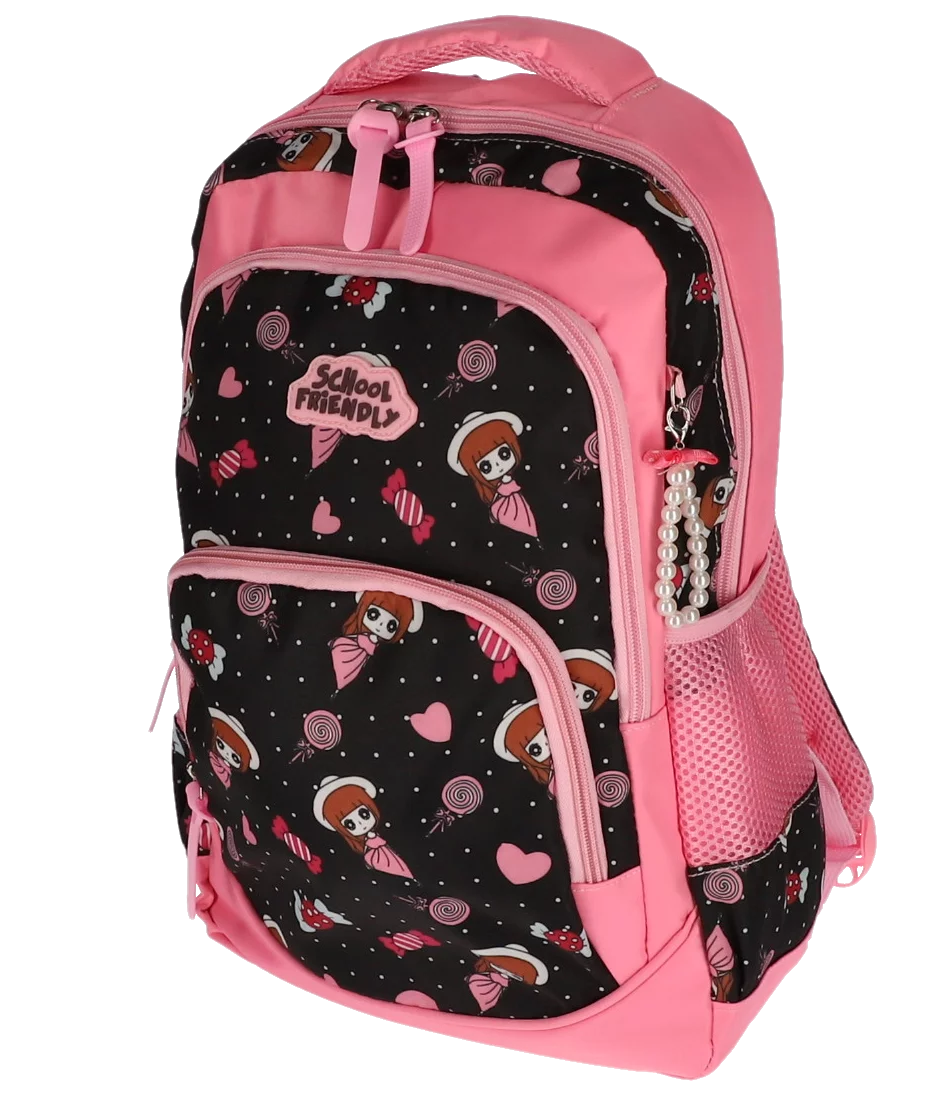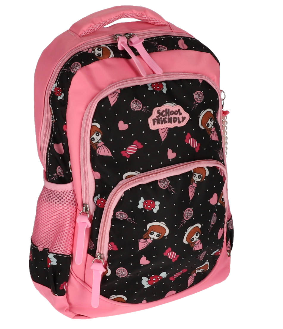 Compartimente multiple: Ghiozdanul are 2 fermoare principale și 3 buzunare, oferind suficient spațiu pentru organizarea eficientă a cărților, caietelor și altor materiale școlare.