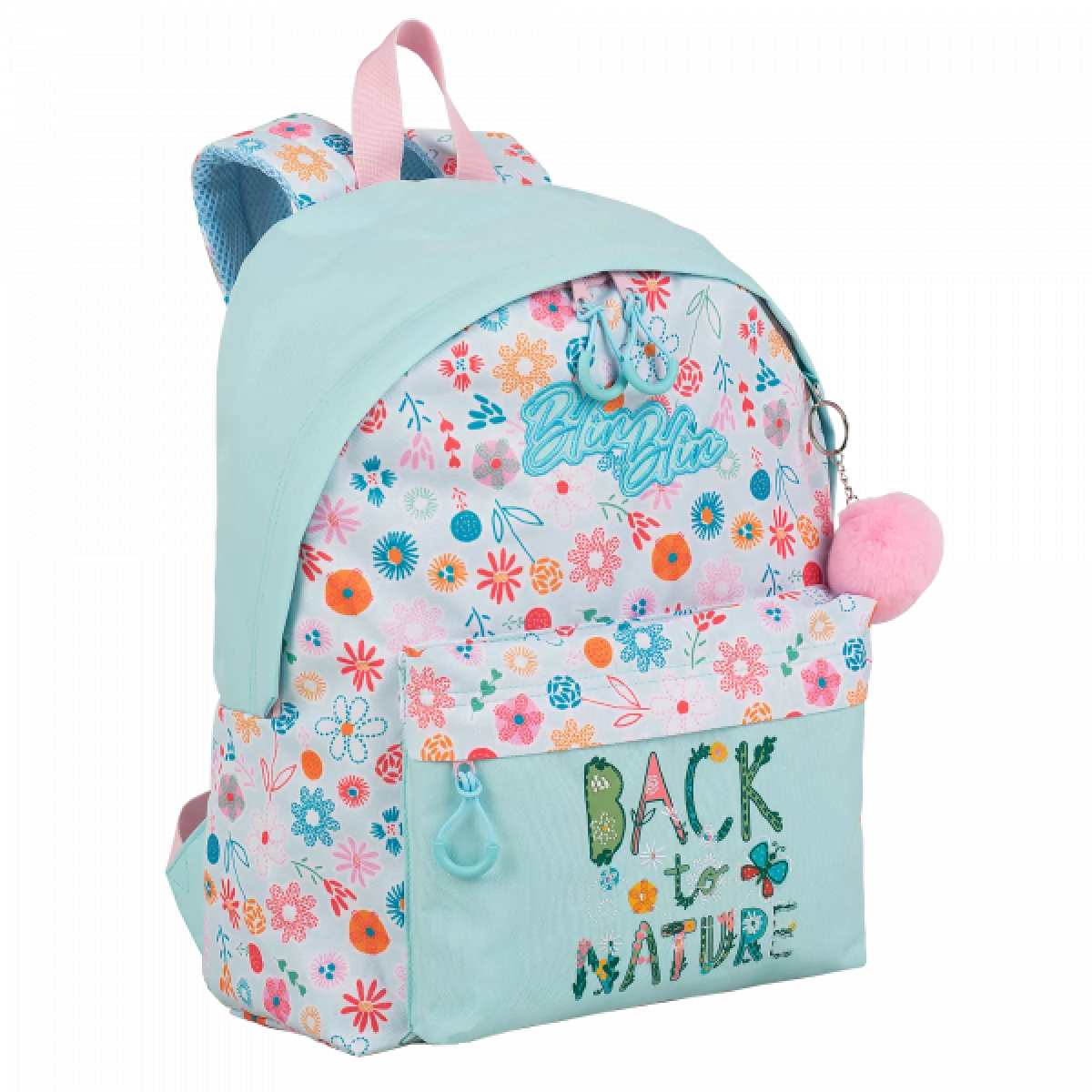 Ghiozdanul Blin-Blin Black To Nature vine cu un accesoriu pom-pom, adăugând un detaliu ludic și distractiv.